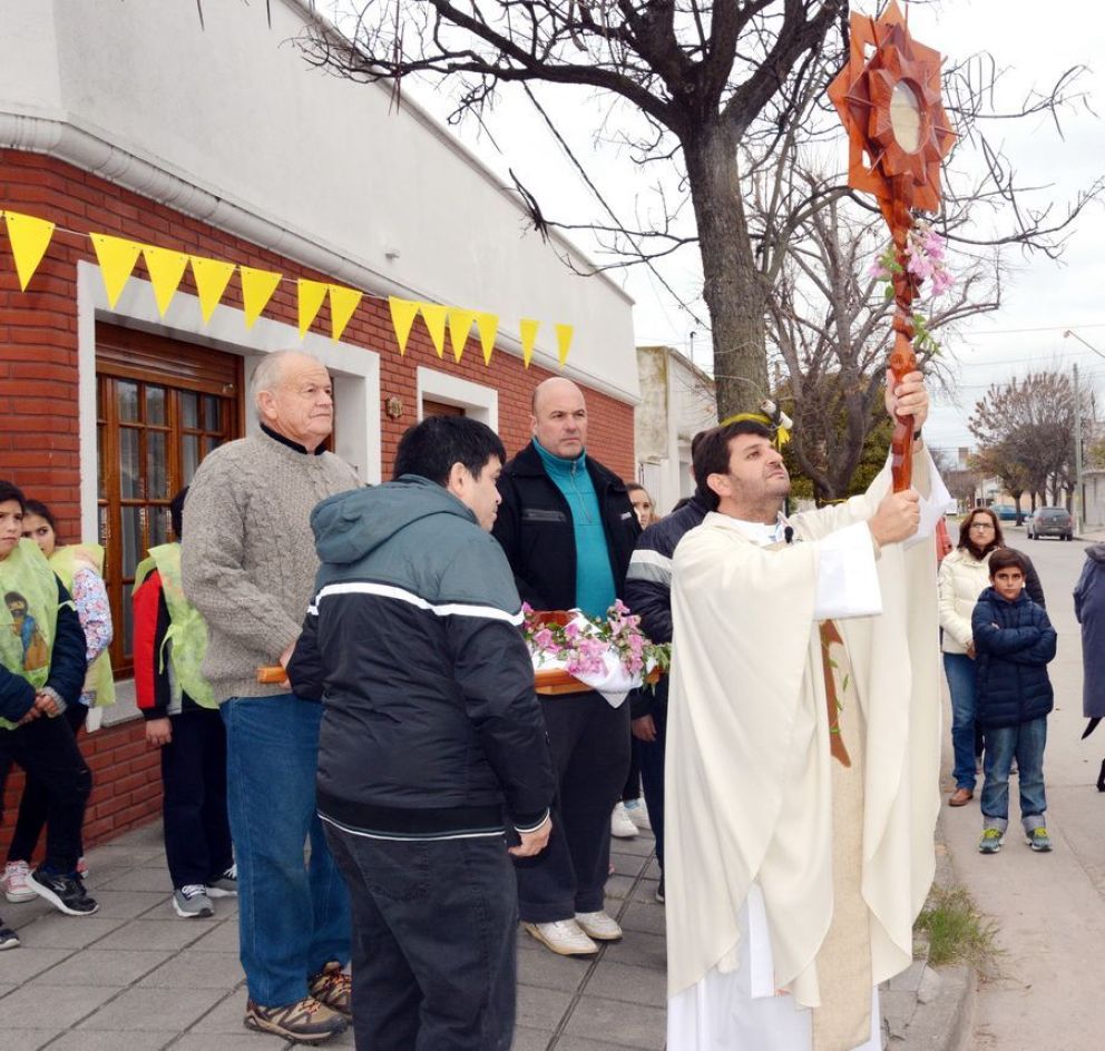 En cada parada, los distintos grupos, movimientos y capillas realizaron un momento de reflexión y oración, y el P. Pedro Fournau bendecía el lugar alzando la custodia que llevaba la hostia. Luego de la procesión se celebró la santa misa en la parroquia y la hostia que recorrió las calles fue repartida en la comunión entre las personas que la elaboraron, los Ministros Extraordinarios de la Comunión y voluntarios de Cáritas, como signo de los que preparan el pan, nos procuran el pan y los que nos acercan el pan.