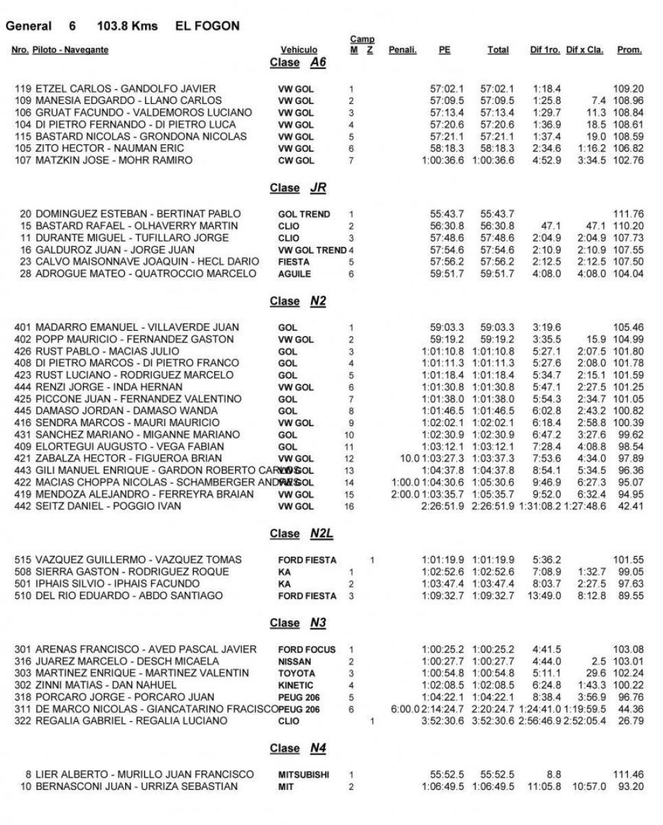 En Clase A6, ganó Carlos Etzel; en Clase N2, Emanuel Madarro; en Clase N2L, Guillermo Vázquez; en Clase N3, Francisco Arenas y en Clase N4, Alberto Lier. Se vivió una verdadera fiesta.