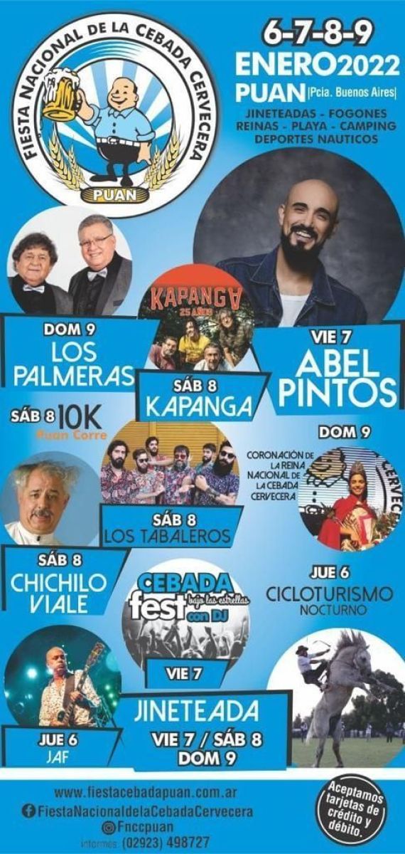 JAF, Abel Pintos, Kapanga y Los Palmeras animarán la Fiesta de la Cebada Cervecera de Puan