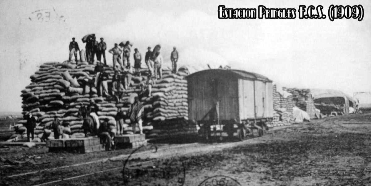 El 12 de Julio de 1903, el Partido de Coronel Pringles quedó en comunicación con el mundo civilizado, merced a los rieles tendidos en nuestra jurisdicción por la empresa del Ferrocarril del Sud, hoy General Roca.