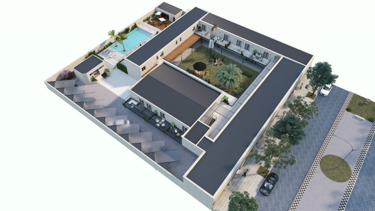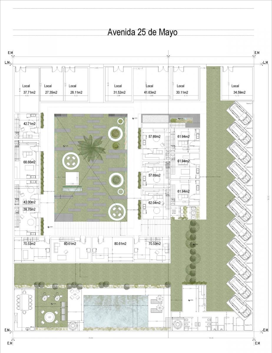 El espacio tiene 45 metros de frente por 50 metros de fondo, contendrá 19 departamentos y 7 locales, más cochera, pileta, gimnasios, y hasta un salón para eventos o cine.