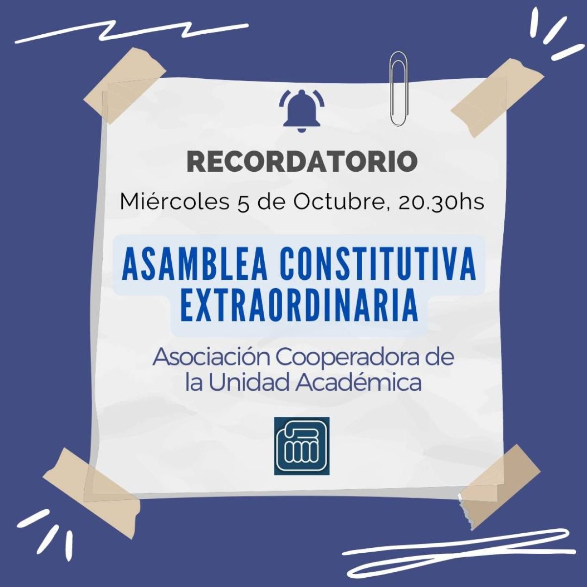 Este miércoles se llevará adelante la Asamblea Extraordinaria, a las 20.30, en la entidad educativa (Av. 25 de Mayo 1150). Se realizará en el hall central para lograr la conformación de la Cooperadora de la Unidad Académica.