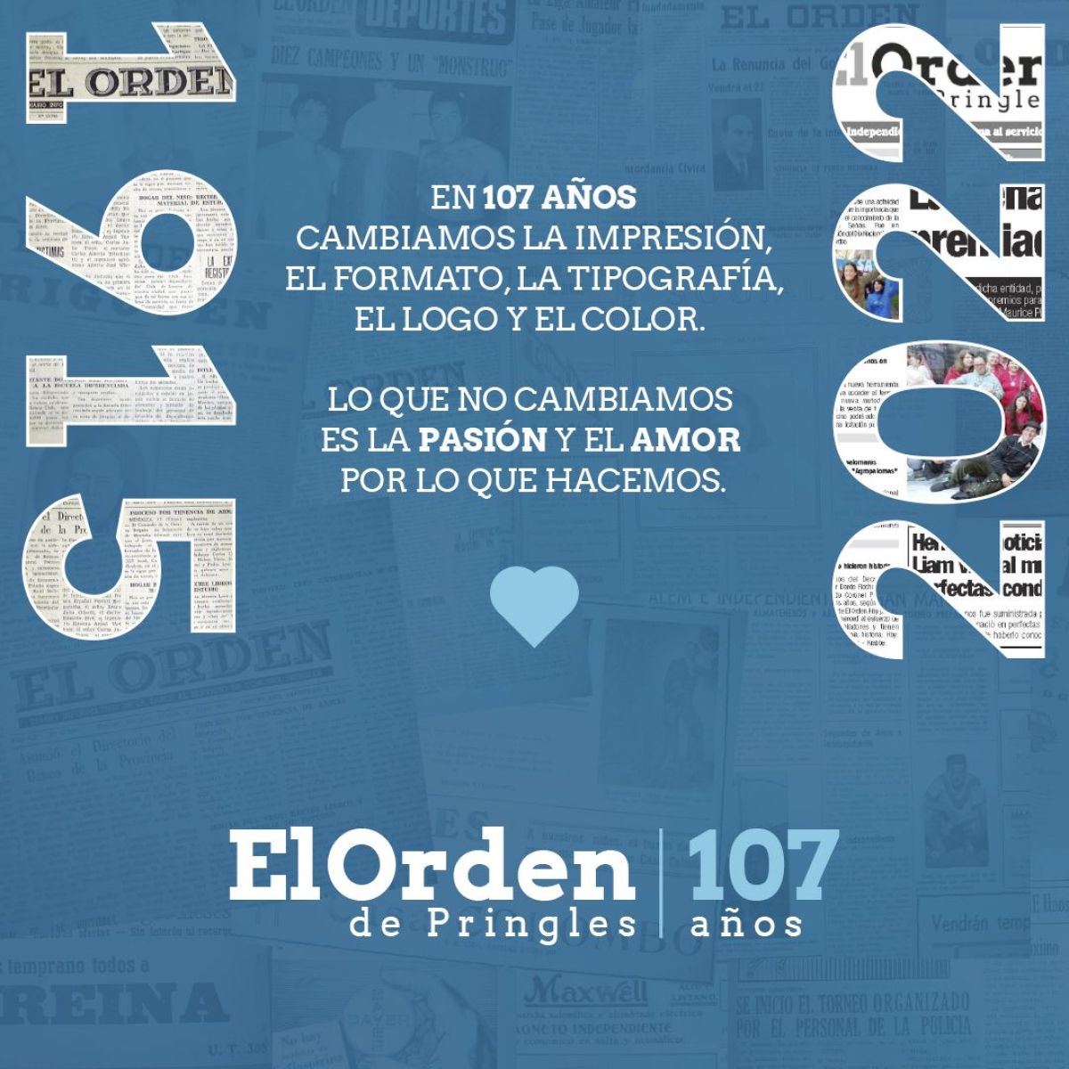 Hoy, queremos agradecer, a todas esas generaciones de lectores amigos y anunciantes, que a lo largo de este camino viene recorriendo EL ORDEN desde hace 107 años, desde aquella primera minerva traída por su fundador en 1915, hasta la actualidad.