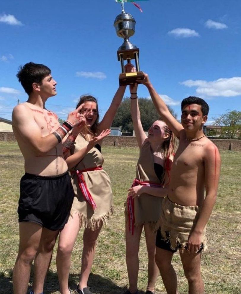 Bruno Perezlindo y Tomás Leoz, caciques de los Huayna (identificados con el color rojo) y Churas (color verde), respectivamente, comentaron a El Orden que la actividad también busca “que los chicos se diviertan” y “a los que estamos en el último año, nos dan el liderazgo por lo que tenemos que organizar todos los juegos. Es sacarlos de la rutina de todos los días: del salón, de la carpeta, del pizarrón para que vengan a divertirse”, expresaron. Junto a los caciques están las brujas que, de manera conjunta, comandan a cada tribu. Los profesores y directivos también participan integrando algunas de las dos tribus.
