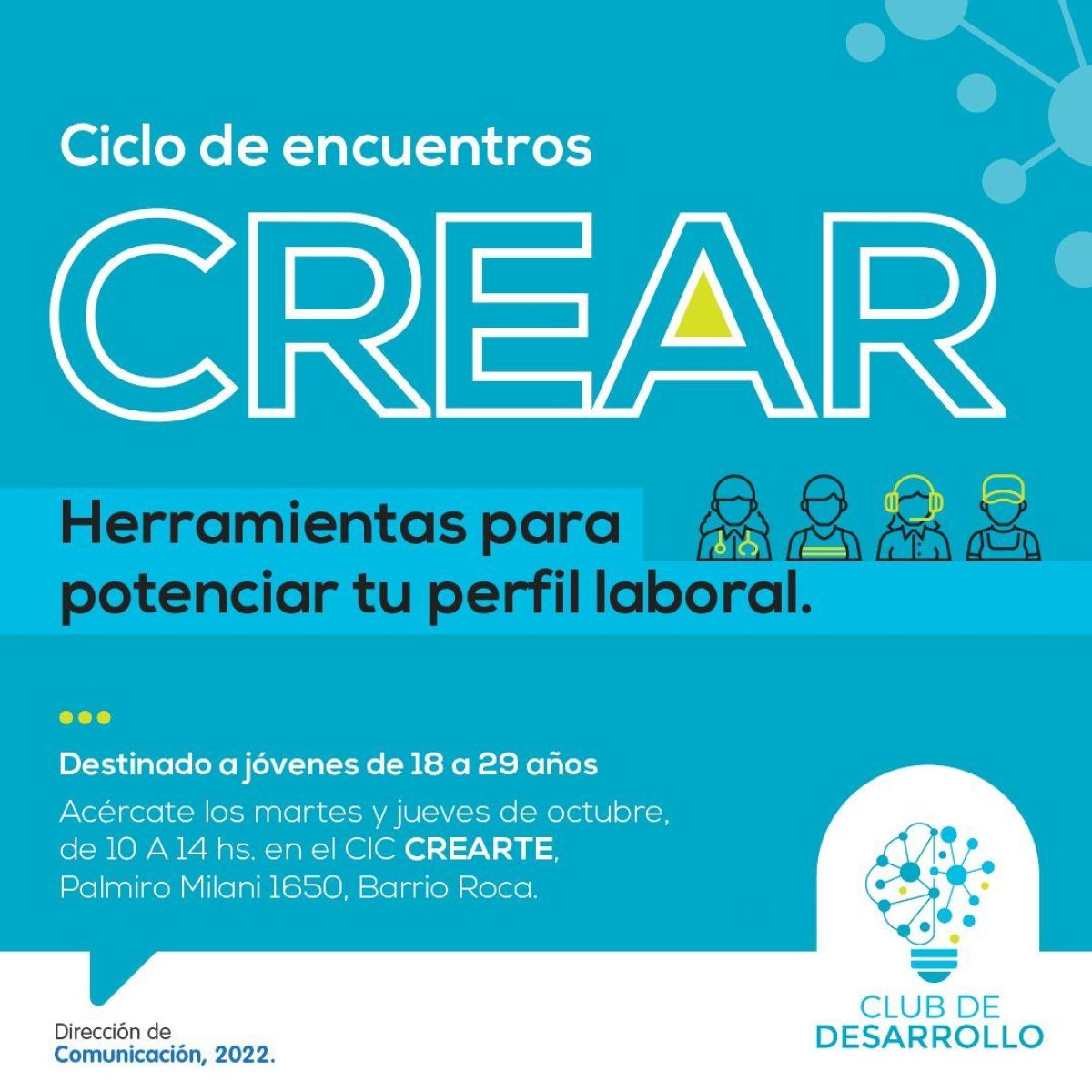 En el Centro de Integración Comunitaria (CIC) Crearte ,del Barrio. Roca, se presentó CREAR, un ciclo de encuentros de herramientas para potenciar el perfil laboral de jóvenes.