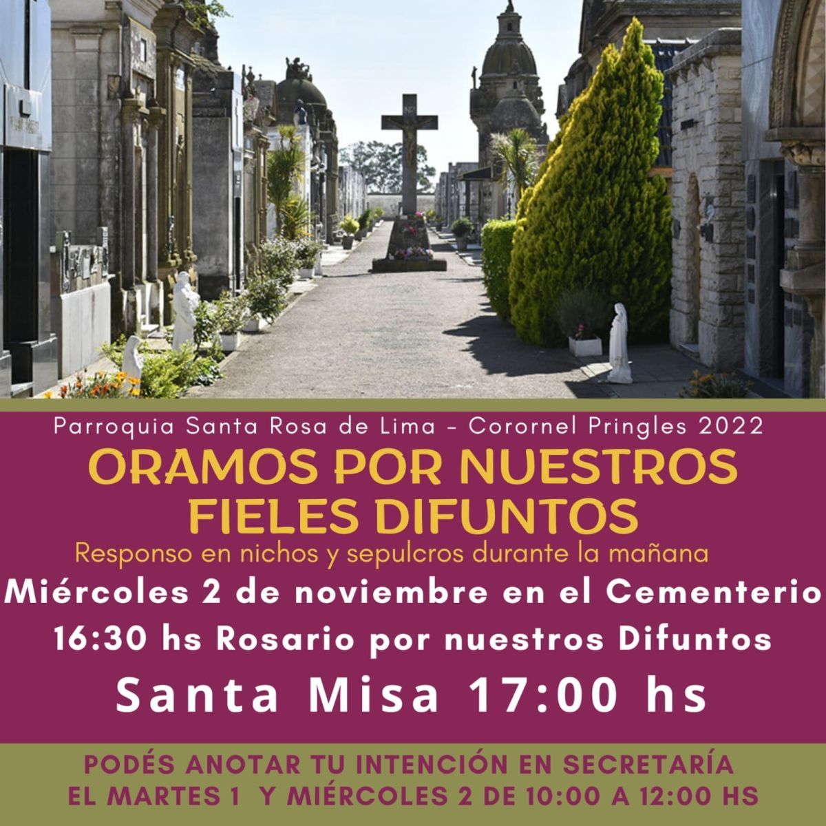Por tal motivo, la Parroquia Santa Rosa de Lima, celebrará este miércoles, la Santa Misa en el Cementerio local, a las 17 horas, previo rezo del Santo Rosario.
