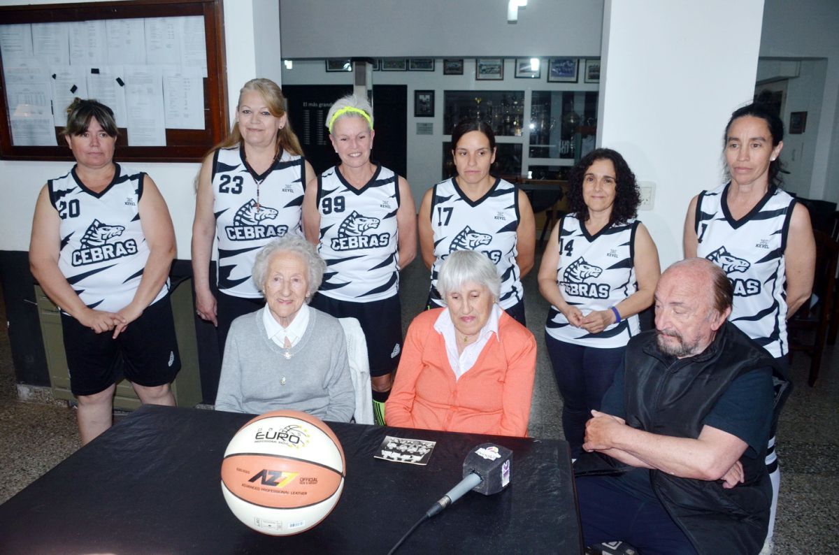 Las Cebras, acompañadas por José Luis Bottini, en el buffet del Club Independiente, realizaron un reconocimiento a dos de las primeras jugadoras que tuvo nuestro básquet: Delia Lacazette y Chela González.