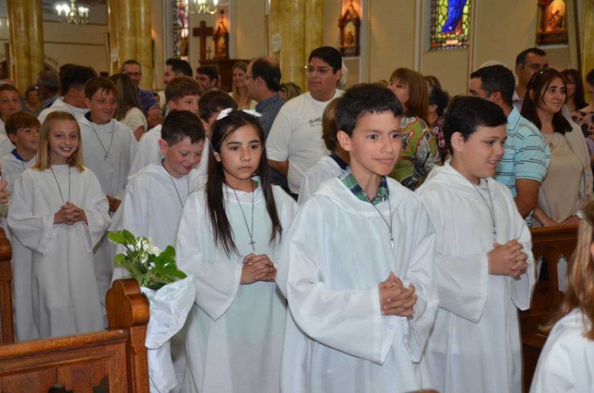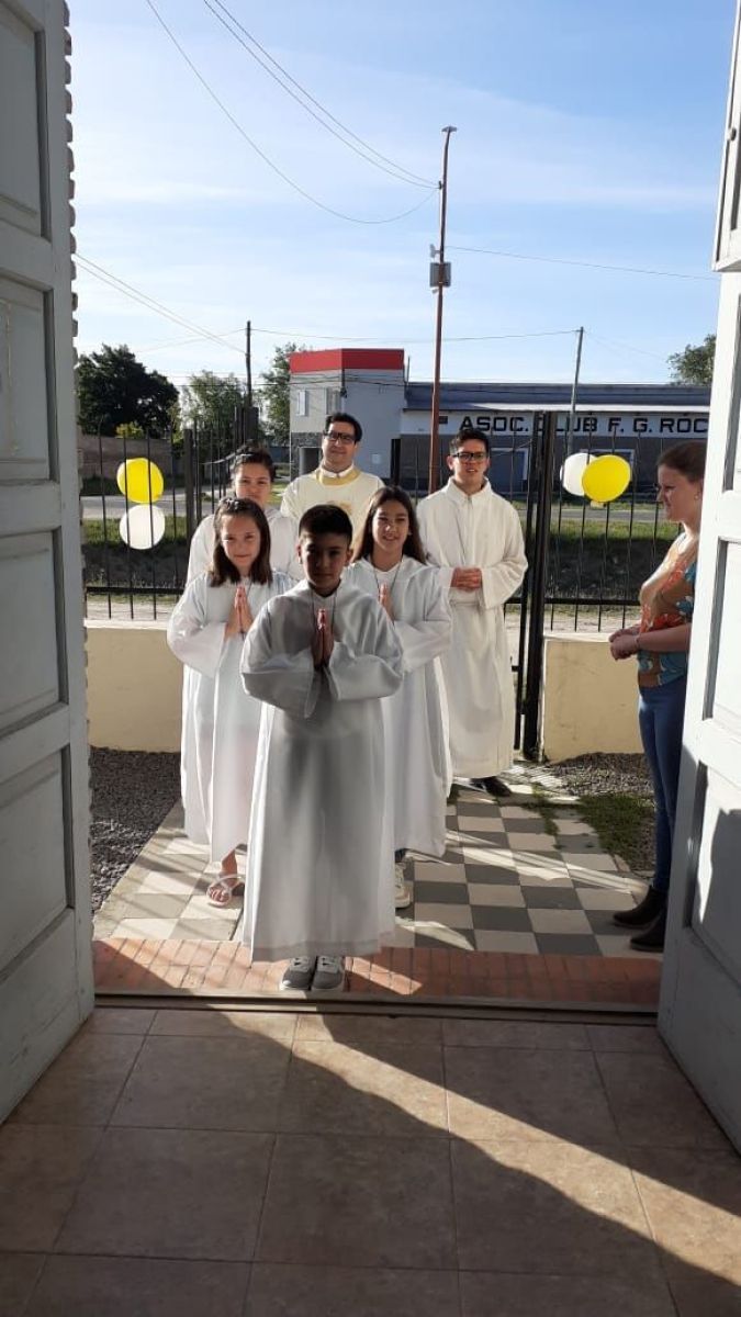 La capilla Nuestra Señora de Fátima, ubicada en el Barrio Roca, cinco niños tomaron su Primera Comunión, en la tarde del sábado pasado, a las 18 horas. Mientras que el domingo, lo hicieron 24 niños en la Parroquia Santa Rosa de Lima, sacramento impartido por el Padre Matías Pardo.