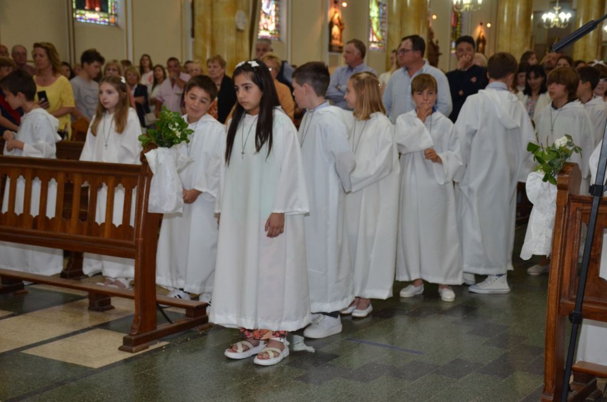 En tanto, en la Parroquia Santa Rosa de Lima, en el transcurso de la Santa Misa de este domingo 6 de noviembre, el segundo grupo, integrado por niños del Colegio Sagrado Corazón recibieron el Cuerpo y Sangre de Cristo, a cargo del Padre Matías Pardo y son los siguientes: