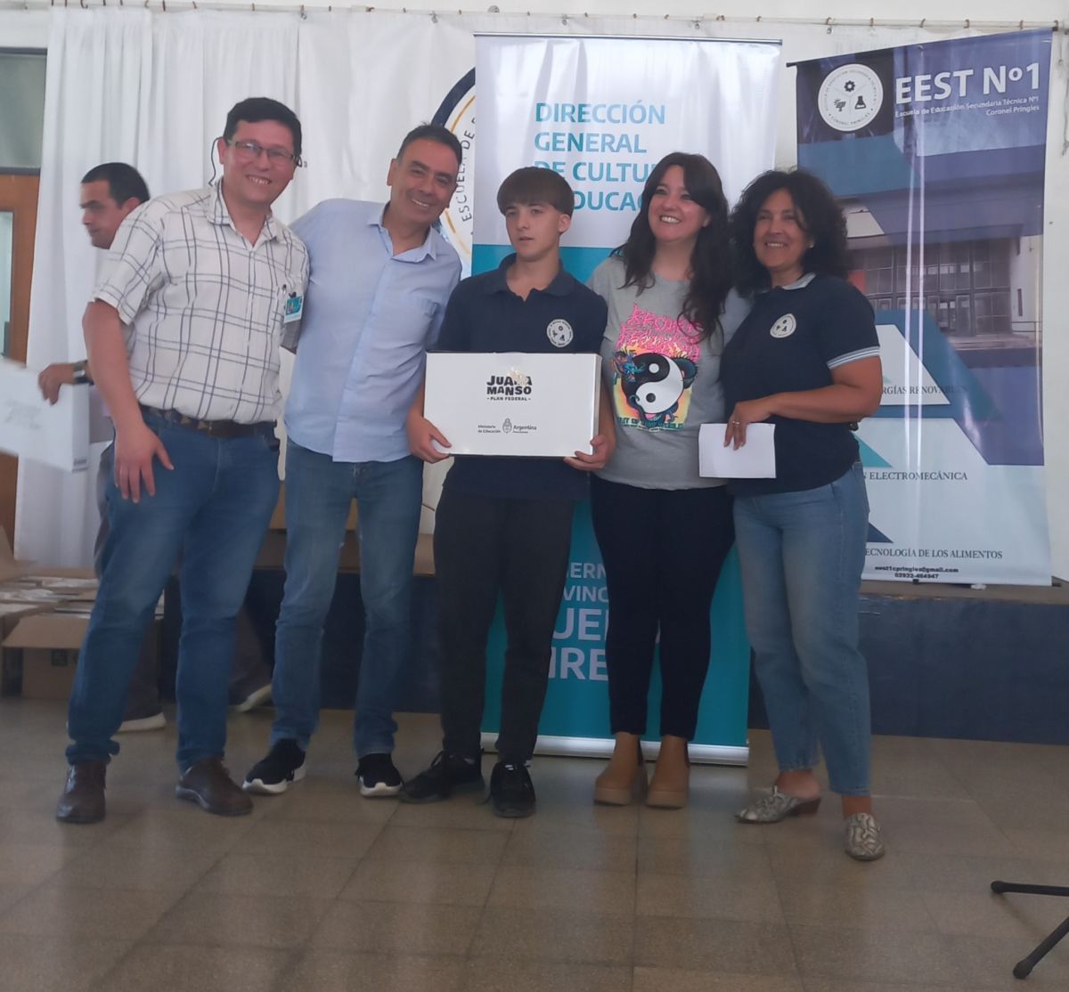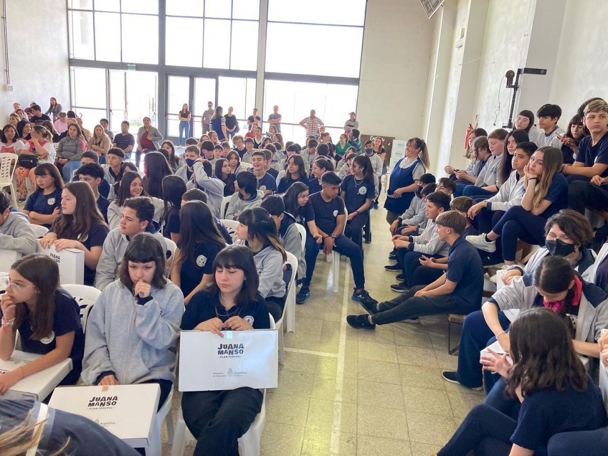 En el marco del Programa Nacional 'Juana Manso' (ex Conectar Igualdad), alumnos de la Escuela de Educación Secundaria Técnica N° 1, de Coronel Pringles, 105 recibieron las computadoras portátiles de manos de los funcionarios y directivos presentes.