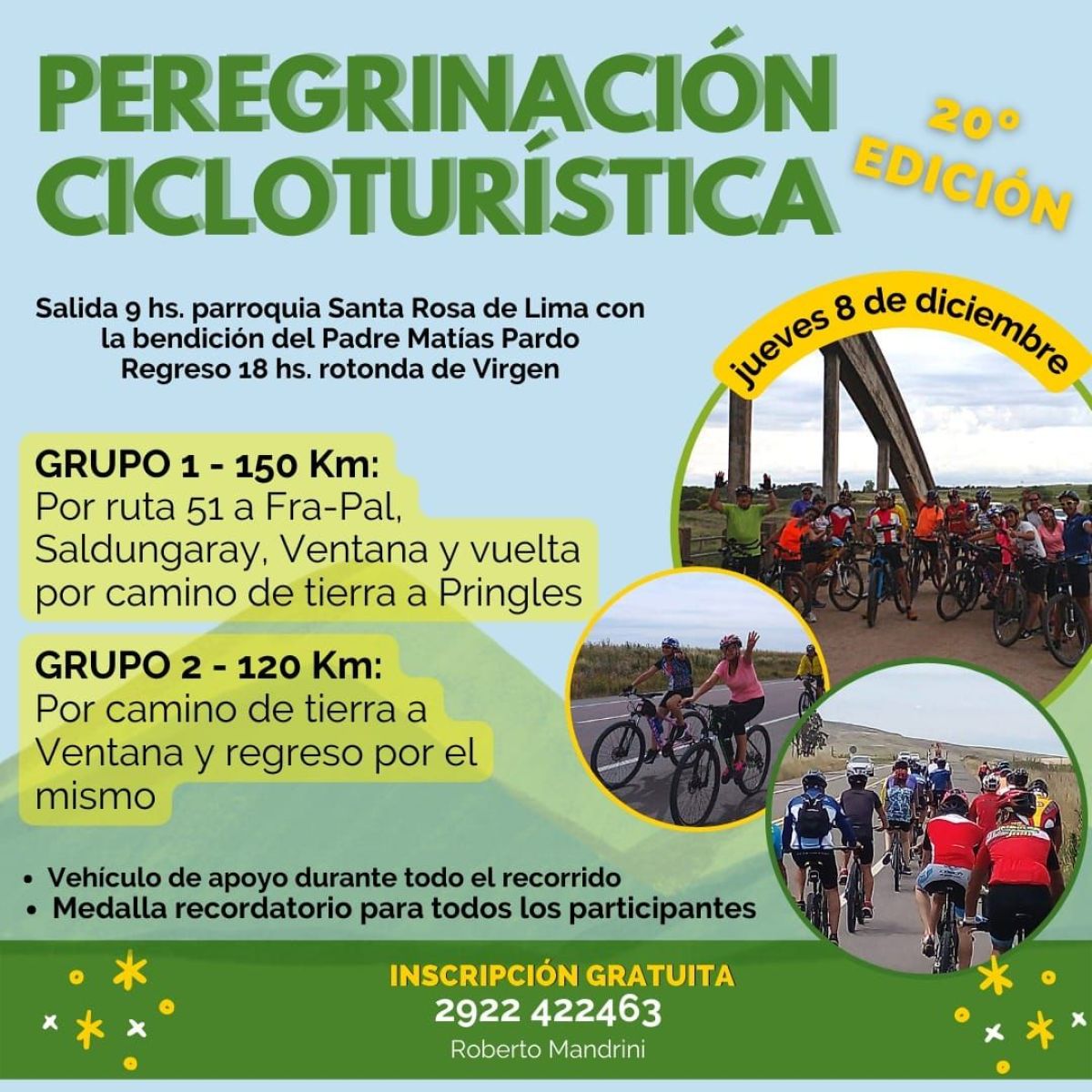 "Saldremos ese día a las 9 horas con la bendición del Padre Matías Pardo. Haremos el tradicional recorrido por la ruta 51, en total 150 km." expresó.