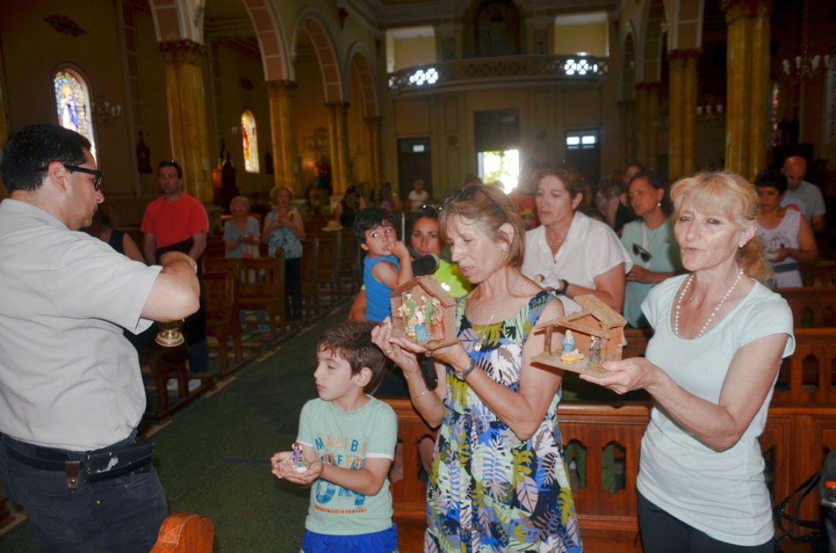 A las 17.30 horas, por la alta temperatura reinante y ante numerosos feligreses, el Padre Matías, acompañado por el Padre Pascual, realizó la bendición del hermoso Pesebre central ubicado en el Altar Mayor de la Parroquia, en el interior del Templo, como así los pesebres que la gente llevó para que sean bendecidos.
