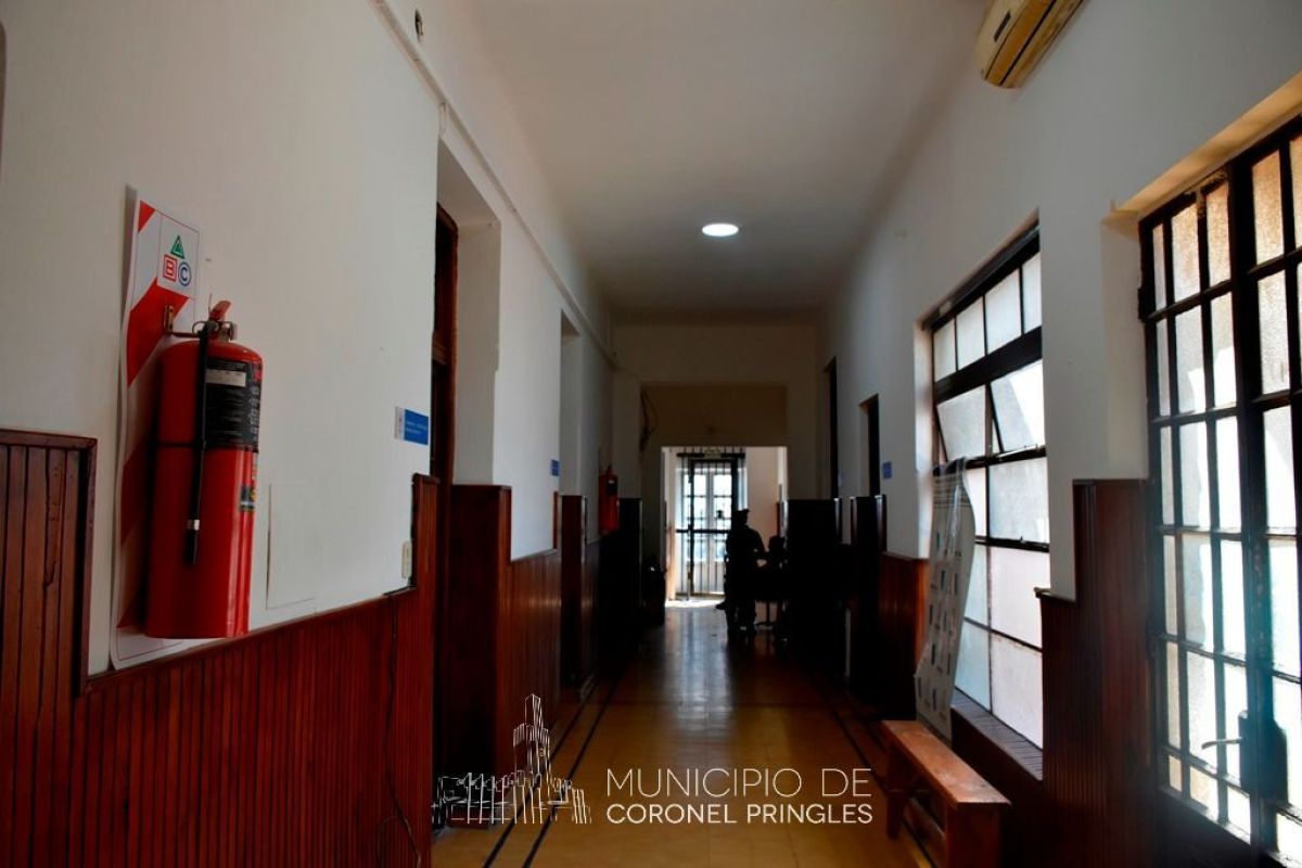 Las obras, financiadas por el Municipio de Coronel Pringles a través del Fondo de Seguridad, demandaron una inversión de $ 3.000.000; y se trabajó en la entrada principal, en la Guardia, en la Sala de Academias y en el pasillo que conduce al patio, sectores donde se repararon cielorrasos, se cambiaron luminarias, se pintaron paredes y revestimientos de madera.
