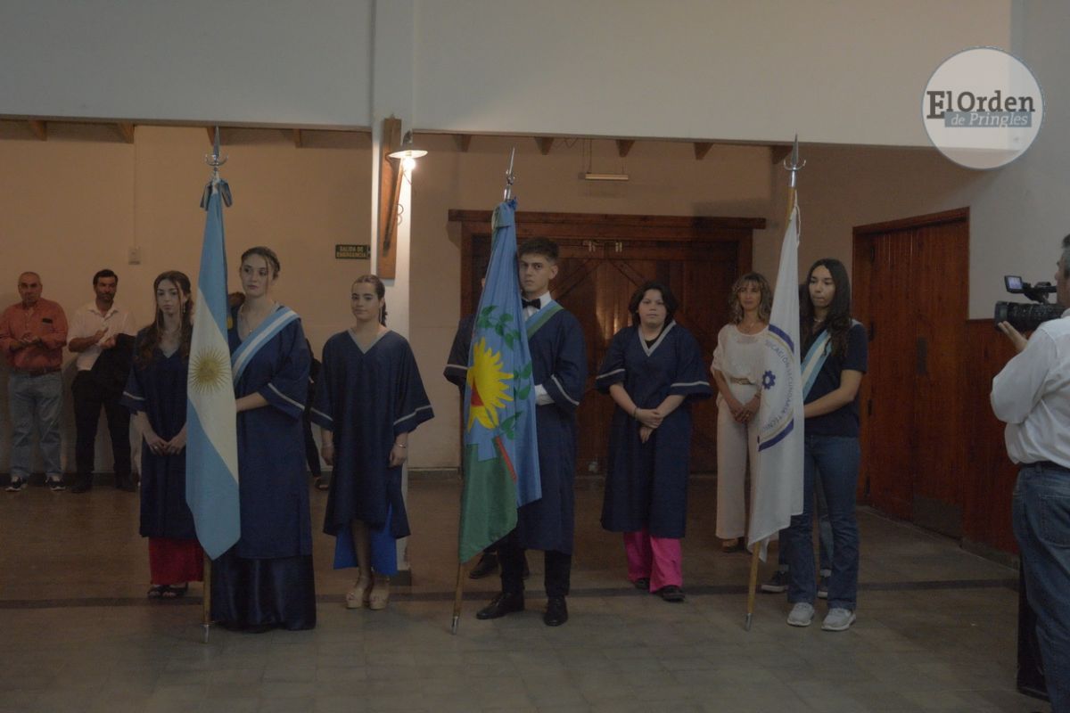 Seguidamente, hizo su entrada la Bandera Nacional, la Bandera Bonaerense e Institucional portada por las alumnas con el mejor promedio durante los 7 años lectivos: