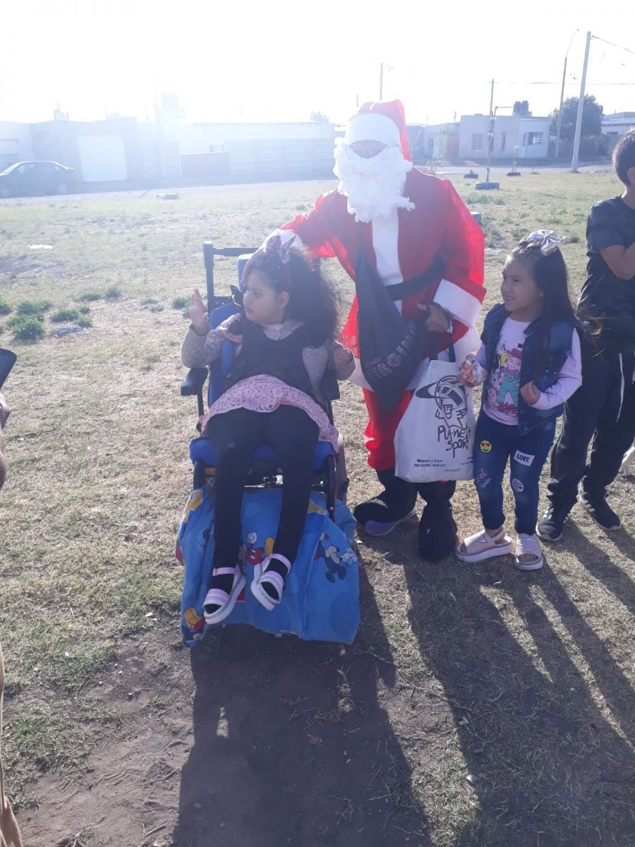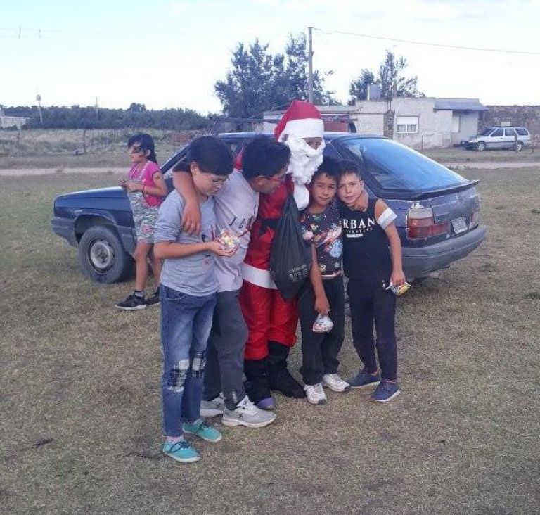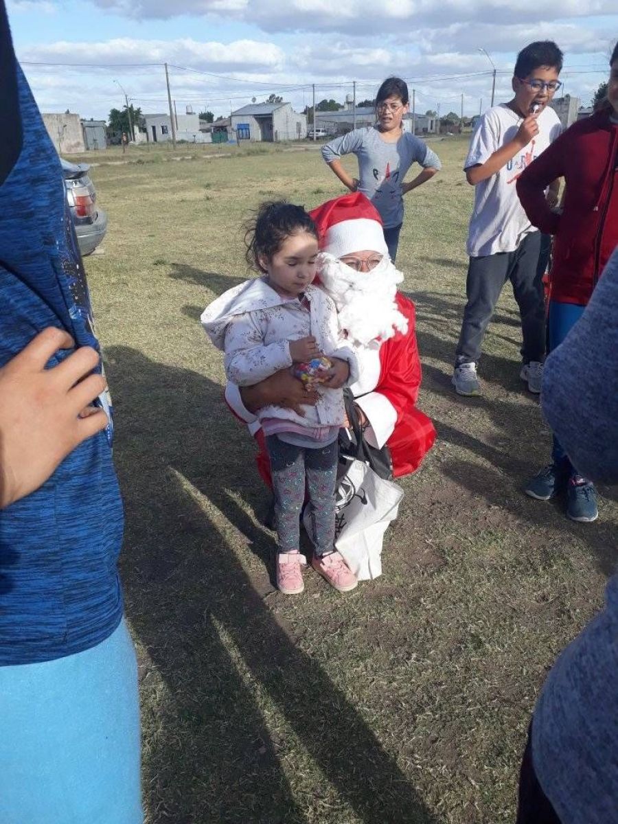 “Quería conseguir un traje de Papá Noel, tenían justo uno para regalarme, y me propusieron vestirme. Fue así que pedí donaciones de golosinas, colaboraron vecinos, algunos del centro, y me recorrí medio Pringles en bicicleta buscándolas, pero fue algo más que satisfactorio. La gente se re prendió donándome golosinas”.