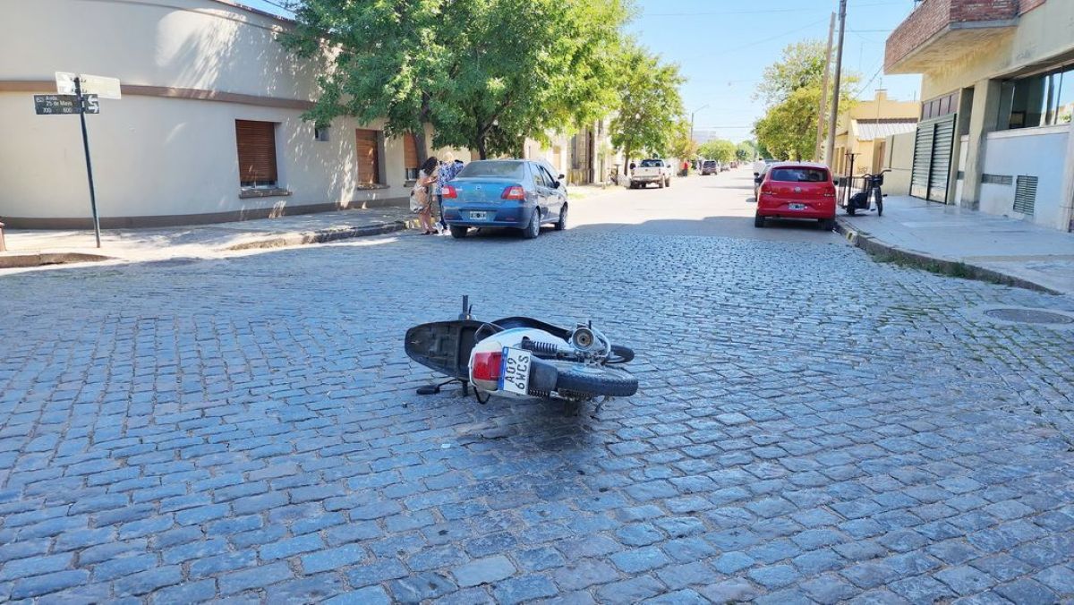 Según relataron testigos a Diario El Orden, la moto transitaba por calle 25 de Mayo y al llegar a Mitre choca contra la parte delantera del auto.