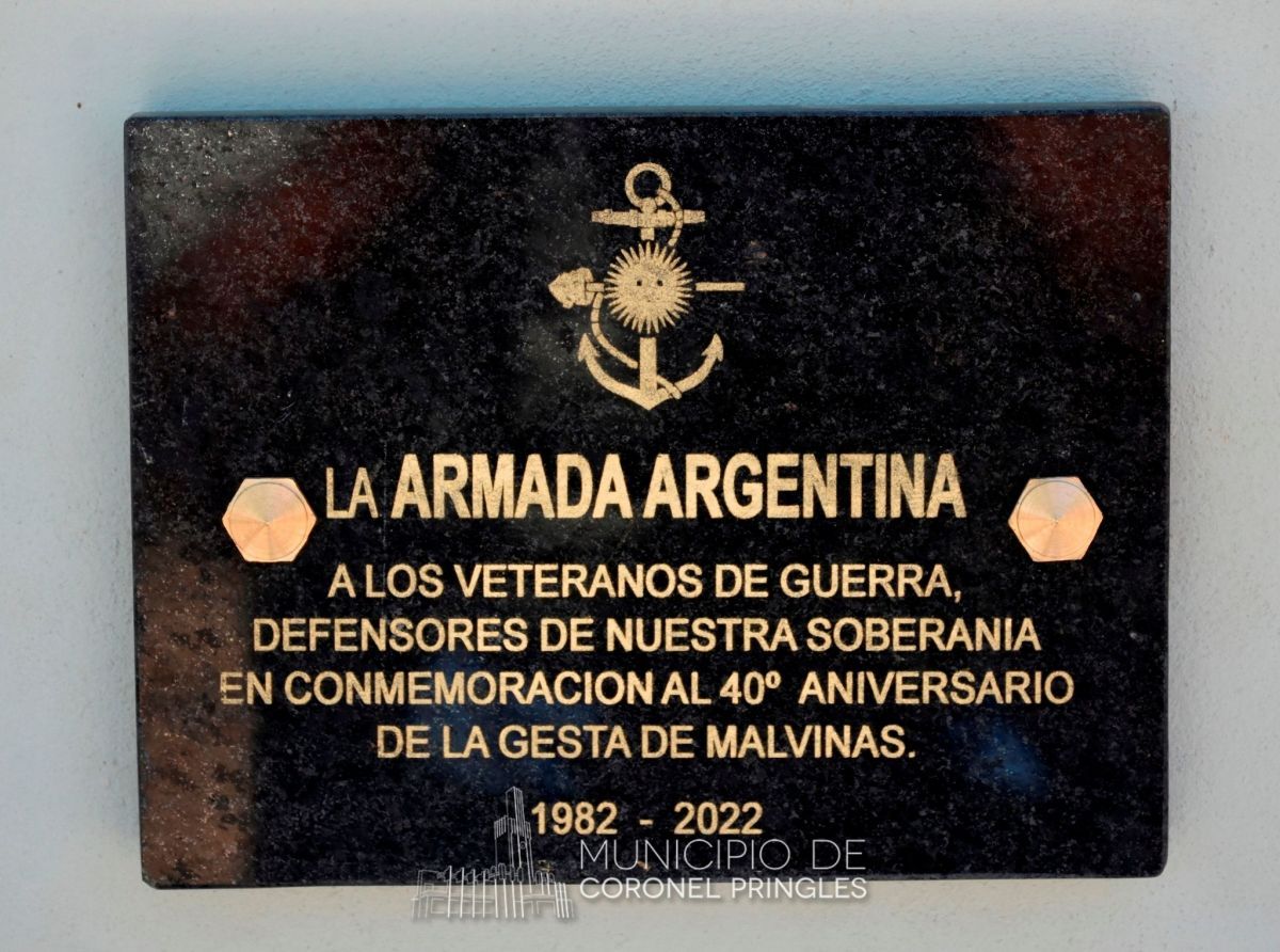 En la mañana del martes , se llevó a cabo el descubrimiento de la placa en homenaje a los Veteranos de Guerra, donada por la Armada Argentina, en el marco del 40° aniversario de la Gesta de Malvinas