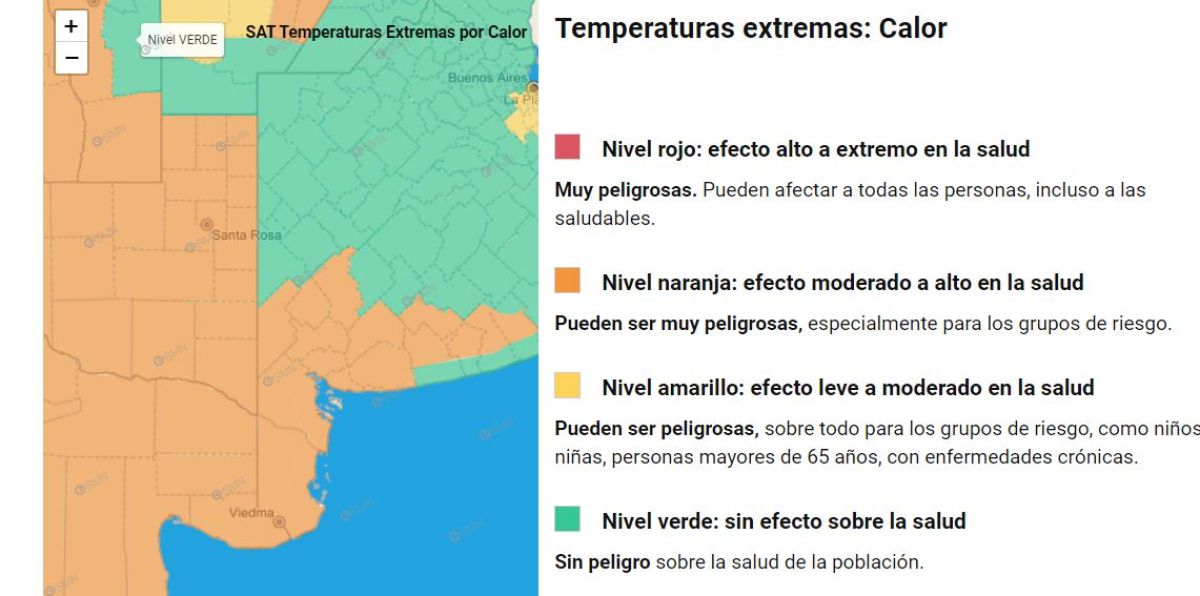 En este caso, el área comprendida no es tan pequeña como en el alerta amarillo, sino que incluye también otros distritos de la región, como Patagones, Villarino, Puan, Adolfo Alsina, Guaminí, Coronel Suárez, Saavedra, Tornquist y Coronel Pringles, entre otros. También comprende a la provincia de La Pampa y gran parte de Río Negro, entre otras.
