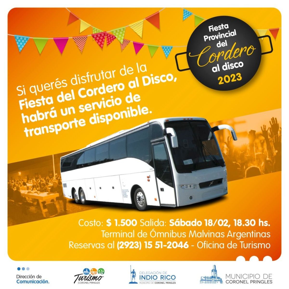 Este sábado, a las 18:30 horas, saldrá un colectivo desde la Terminal de Ómnibus Malvinas Argentinas para aquellas personas que quieran concurrir a la Fiesta Provincial del Cordero al Disco.