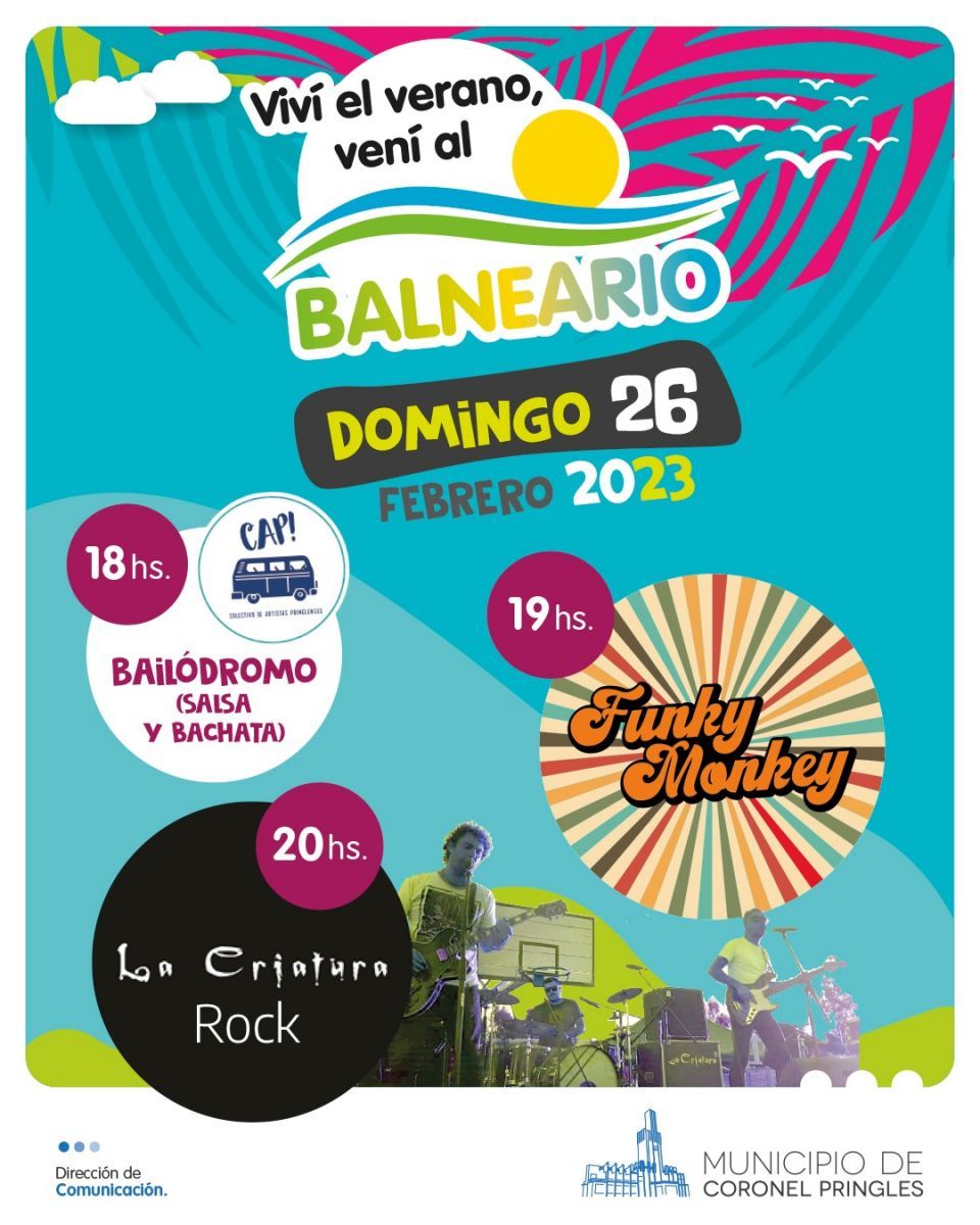 Este domingo 26 de febrero se cierra la temporada 2022 del citado programa estival, con los shows musicales de Funky Monkey y el grupo de rock, La Criatura. Además no faltarán las clases gratuitas de Bachata y Salsa en el Bailódromo.