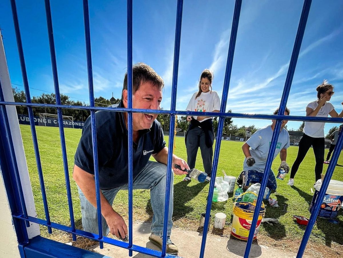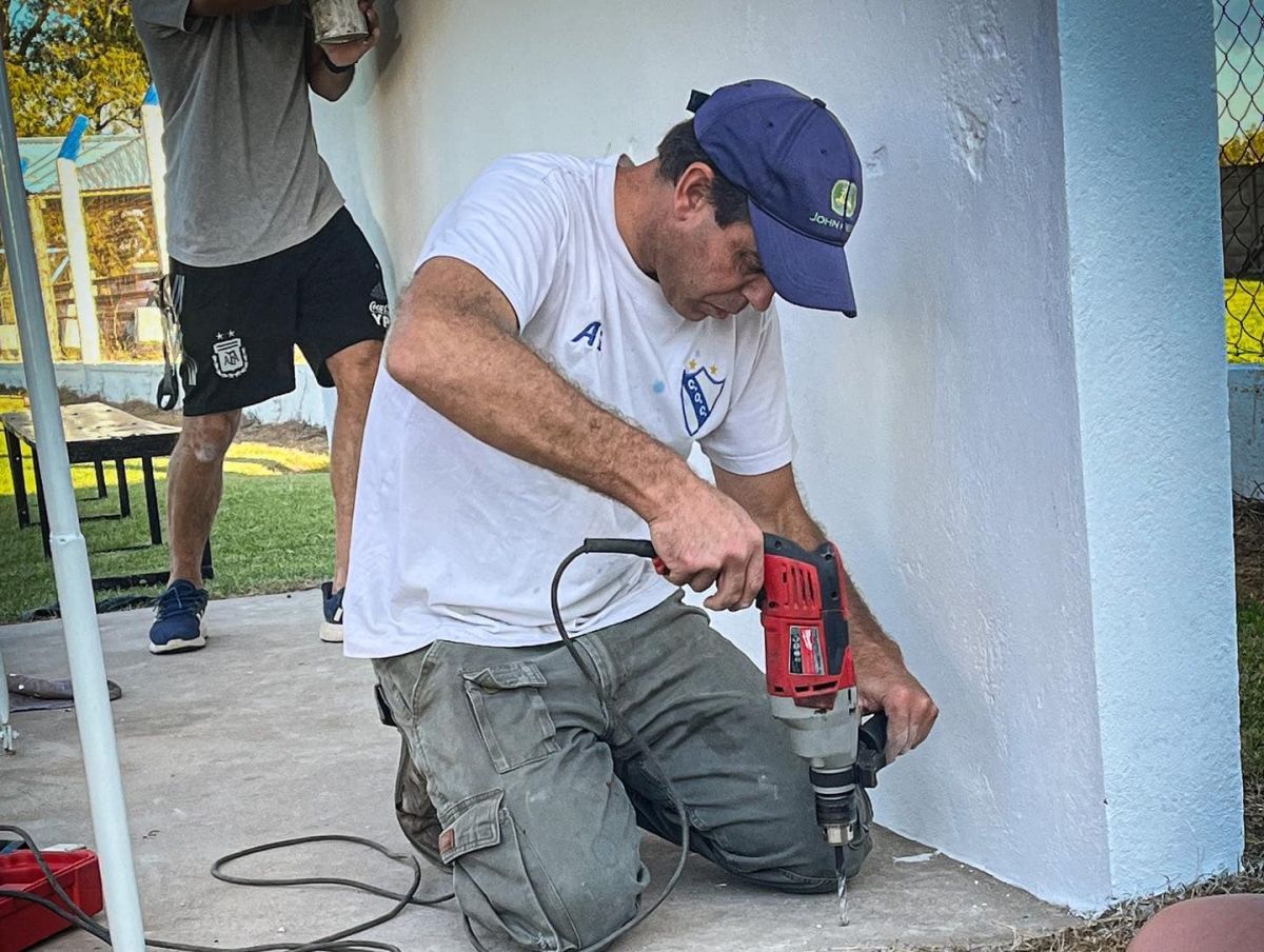 El primer lugar donde comenzaron las mejoras fue “en el paredón que se encuentra detrás del arco, estaba desgastado y pensamos en armarle un diseño de color azul (color que identifica a la institución) con el nombre y la fecha de fundación del club”, comentó Tomás Torres, por lo que contrataron a un dibujante.