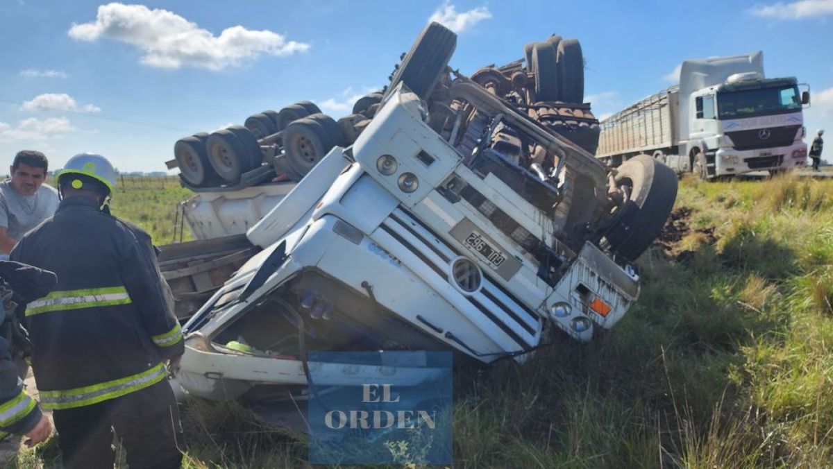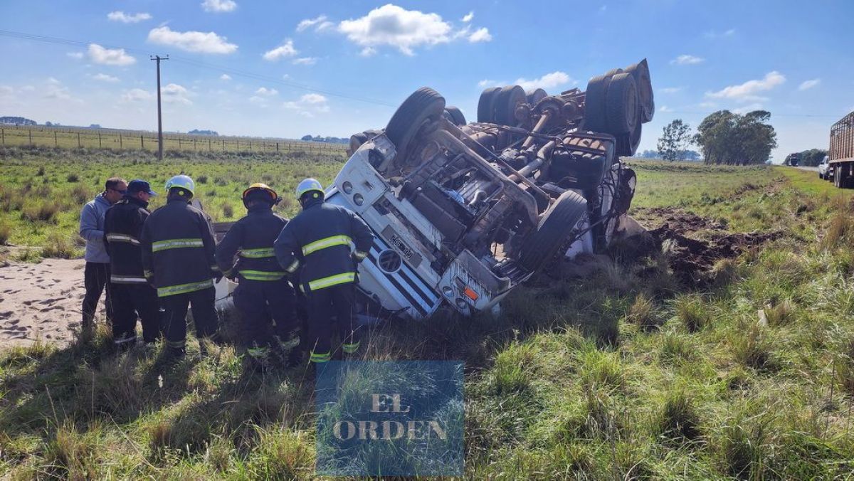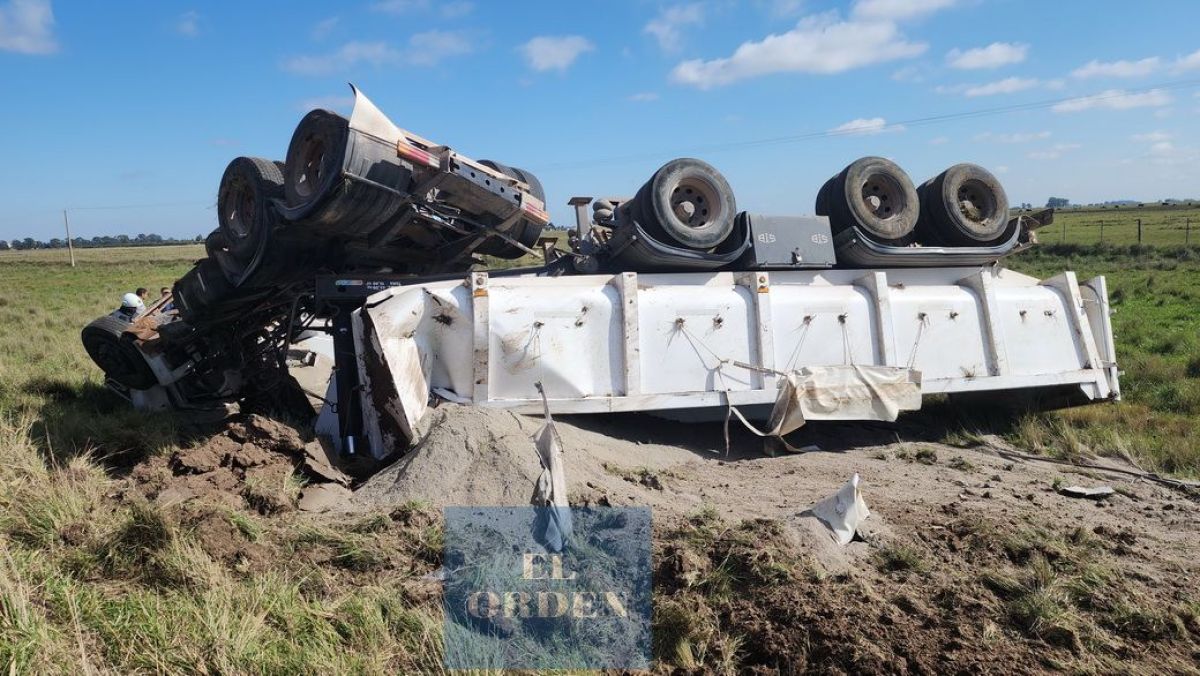 Según se informó, el accidente se produjo alrededor de las 11.50 horas, cuando el camión, identificado como un Volkswagen 17220 de la empresa Conte, cayó en un pozo en la ruta, lo que hizo que se desacomodara la batea y volcara en la banquina. El camión se encontraba cargado con arena en el momento del accidente.