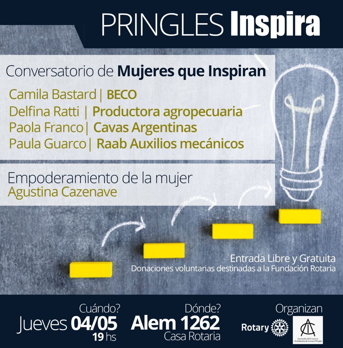 El Club Rotario de nuestra ciudad, informó que el venidero jueves 4 de Mayo, tendrá lugar una charla, denominada “Pringles Inspira – Mujeres de Pringles que Inspiran”.