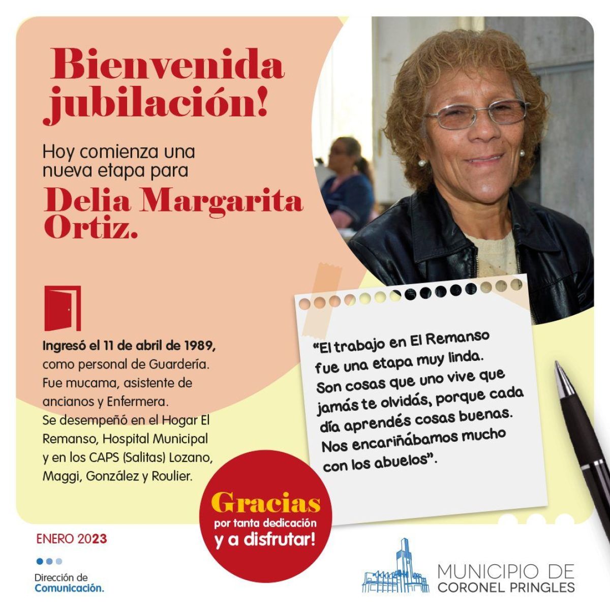 Desde el área de Comunicación Municipal, se informó sobre esta nueva jubilación. En esta oportunidad, se trata de la correspondiente a Delia Margarita Ortiz,