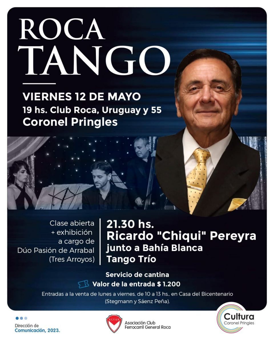 La estelar presencia de Ricardo “Chiqui” Pereyra engalanará la noche de Roca Tango, el viernes 12 de mayo en el club. Además, habrá clase abierta a cargo de Pasión de Arrabal; y actuará Tango Trío