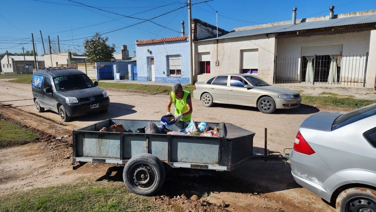 Preocupado por el conflicto que mantiene a los empleados municipales del sector con un servicio acotado, puso en marcha su auto, con un carrito detrás, para recorrer las calles y levantar las bolsas de residuos amontonadas en los basuriles de los domicilios.