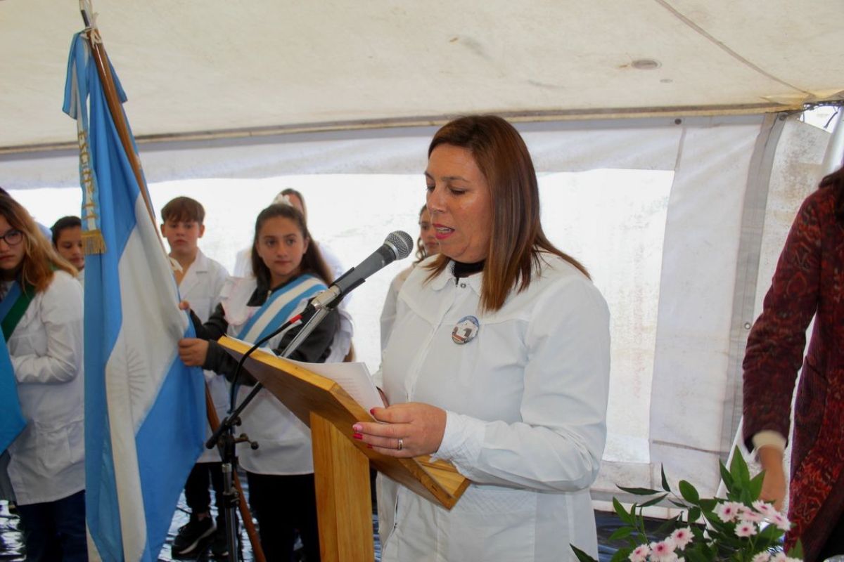 Siguiendo el programa, la Directora de la Escuela N°11, Mabel Durcodoy, pronunció unas emotivas palabras, realizando una reseña del avance que tuvo escuela a través de los años y el desarrollo actual.
