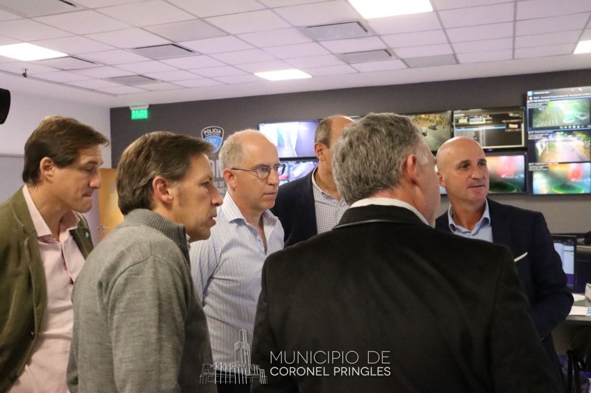 Luego, los funcionarios pringlenses recorrieron el Centro de Operaciones Municipales donde explicaron la metodología de trabajo en un municipio del conurbano con situaciones complejas en materia de inseguridad y cómo ha disminuido con “Ojos en Alerta”.