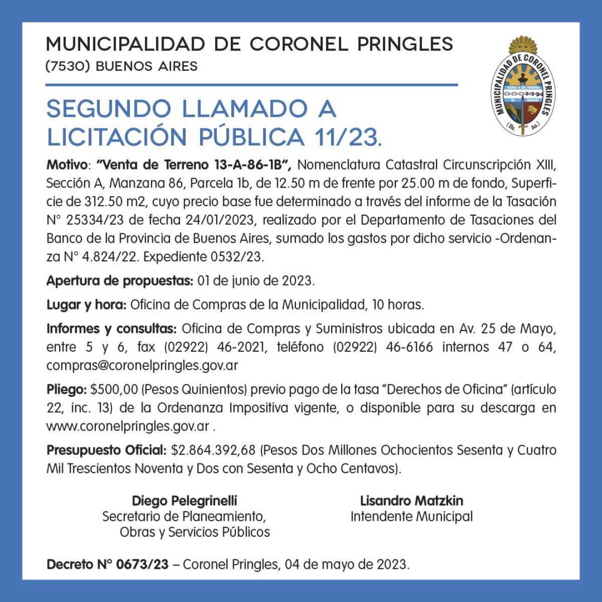 Decreto N° 0673/23– Coronel Pringles, 04 de mayo de 2023.