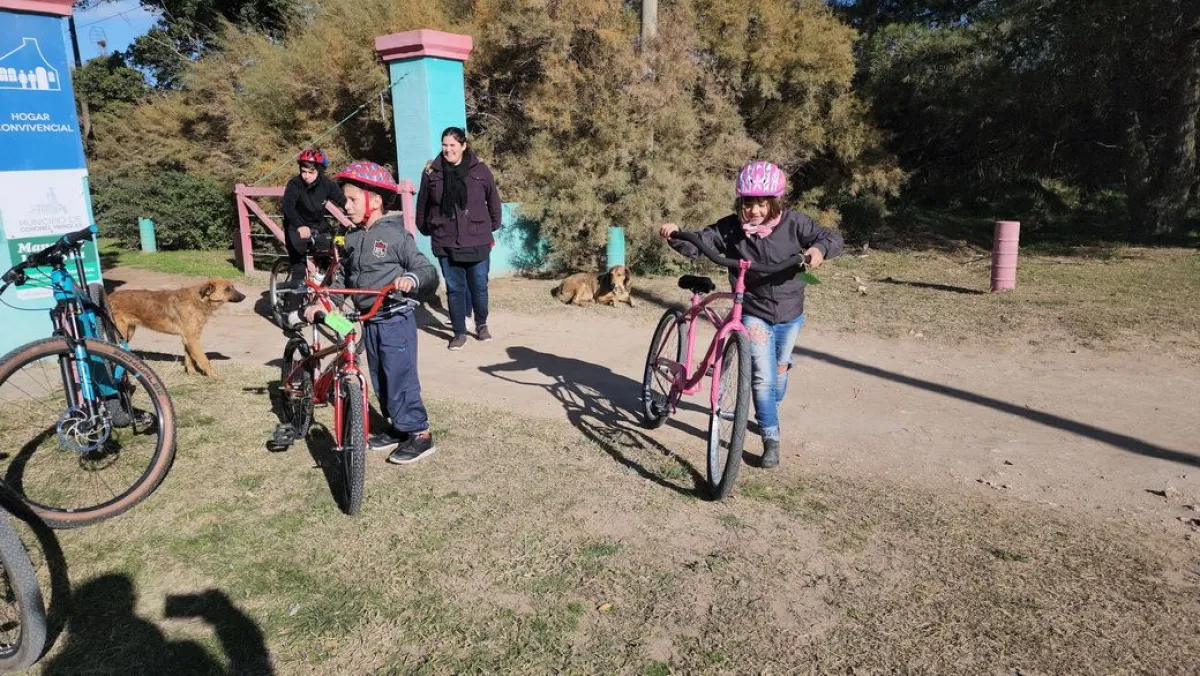 “La idea es, que un vez al mes, venir a buscarlos y sacarlos a dar una vuelta en bicicleta, También les trajimos de regalo un inflador, para que ellos puedan usarlo cuando se desinflen las ruedas, y así de a poco, enseñarles lo básico de mecánica para que aprendan. Estamos muy felices”, señaló invitando seguidamente a los chicos subirse a sus bicicletas y dar una vuelta por la hermosa pista de ciclismo.