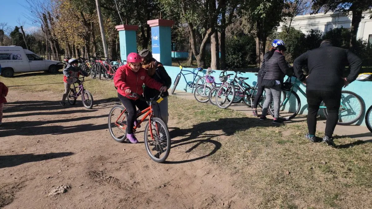 Leticia explicó que “esta es la primera parte del proyecto. Ahora, vamos a dar una vuelta por la pista del Ciclys Club y al regreso, tomaremos una chocolatada con tortas”.