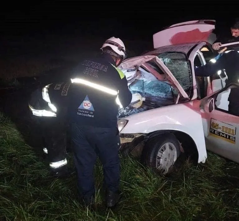 El rodado de alquiler, perteneciente a la firma 45-1111, circulaba en sentido contrario al Toyota Corolla, es decir, en sentido a Energía y con destino final la ciudad de San Cayetano.