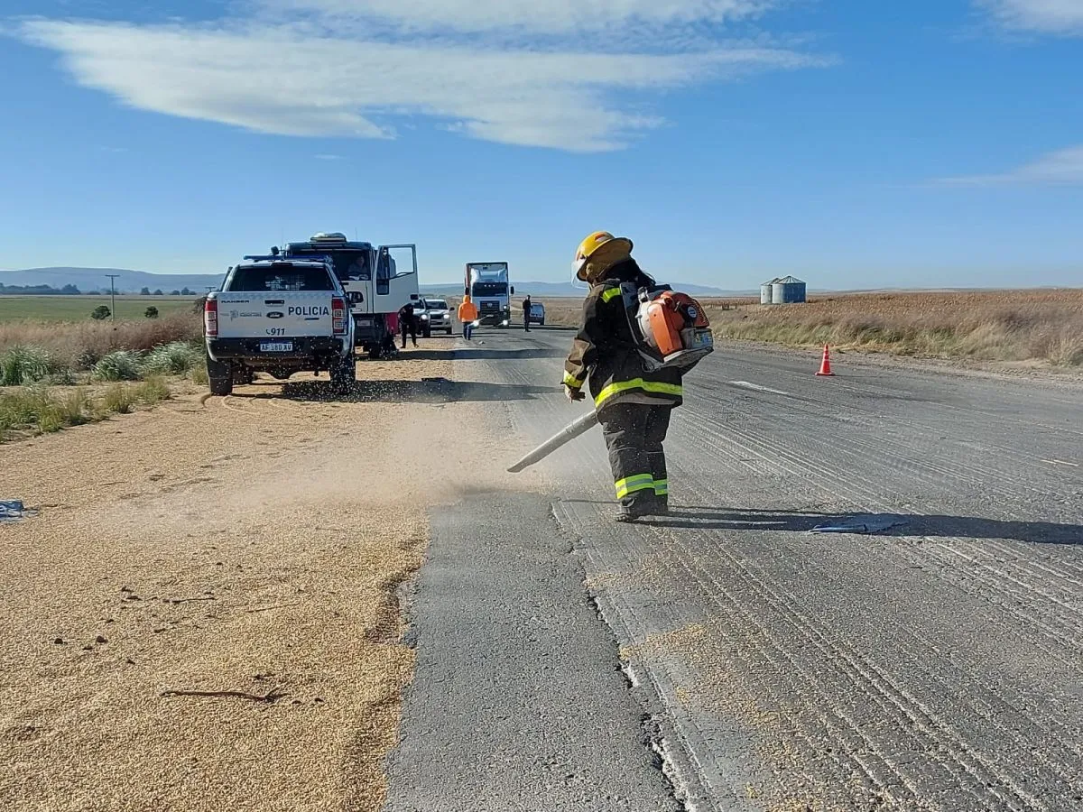 El martes por la tarde se produjo un accidente en la ruta provincial 51 donde debieron intervenir personal del cuerpo de Bomberos Voluntarios al mando de Carlitos Imanoni, para realizar las tareas de limpieza al quedar esparcida en la cinta asfáltica y parte de la banquina, carga de cereal.