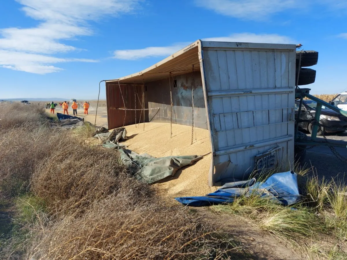 Un camión que viajaba desde Coronel Pringles a Bahía Blanca, perdió parte de su carga (cereal), al volcar su acoplado.
