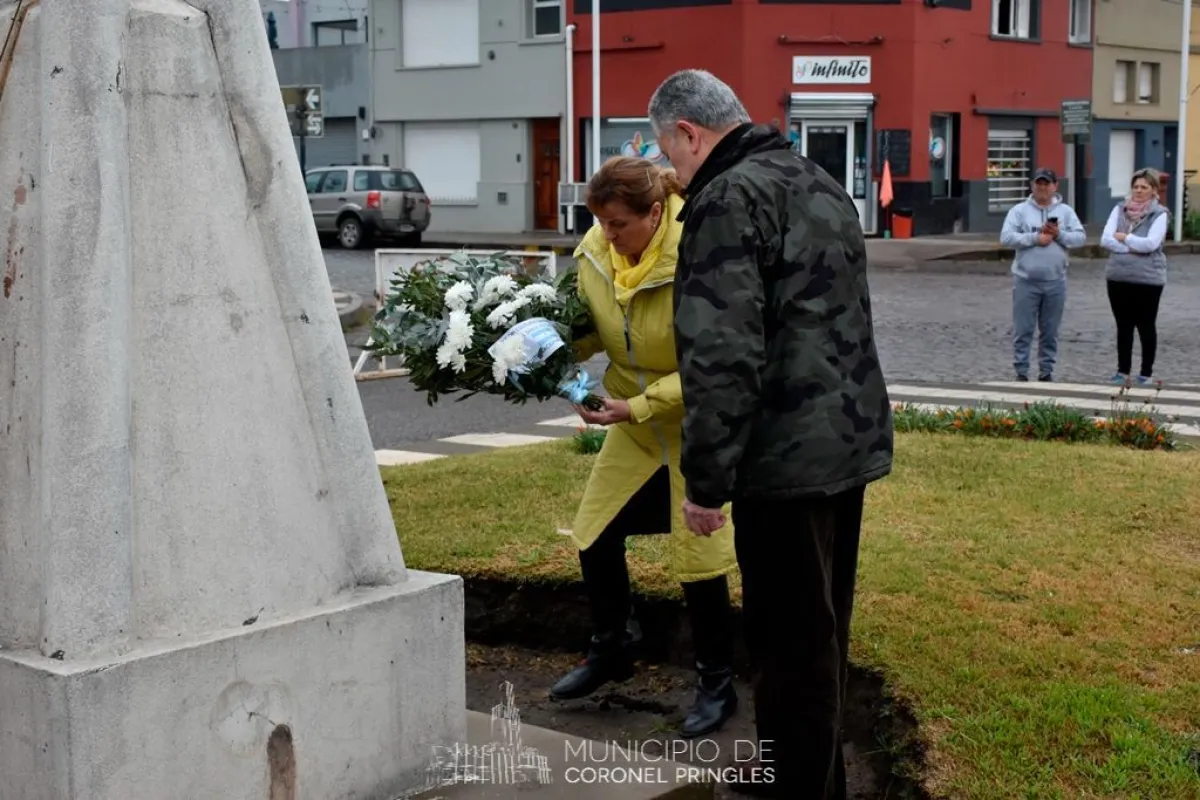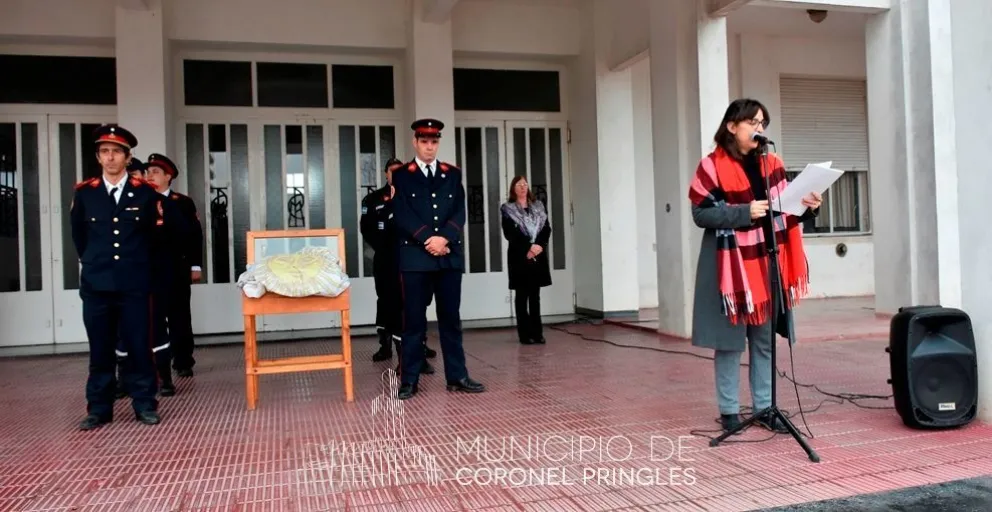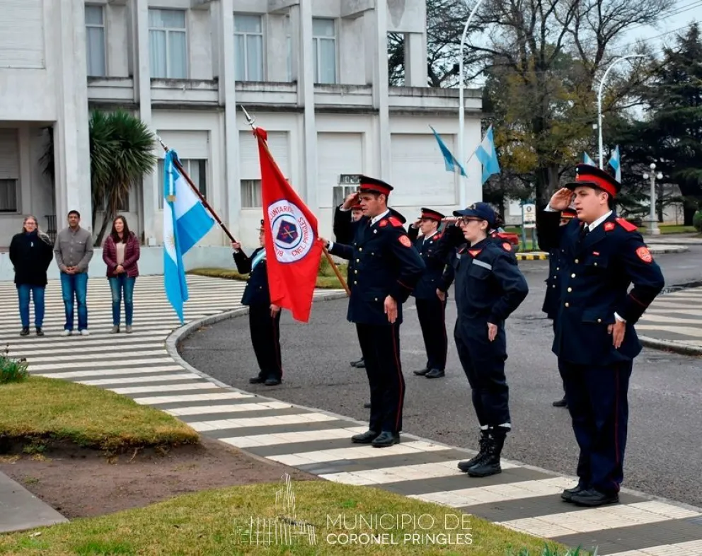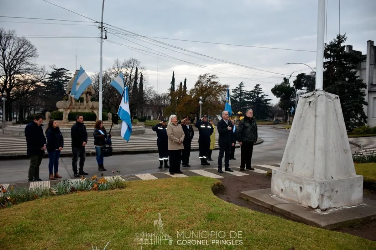 En la Explanada del Palacio Municipal, en el marco de un día gris y húmedo, se llevó a cabo este martes, el izamiento de nuestro Pabellón Nacional, al conmemorarse el Día de la Bandera, y el 203° Aniversario del Paso a la Inmortalidad, del General Manuel Belgrano, con Guardia de Honor del Cuerpo de Bomberos Voluntarios de Coronel Pringles.
