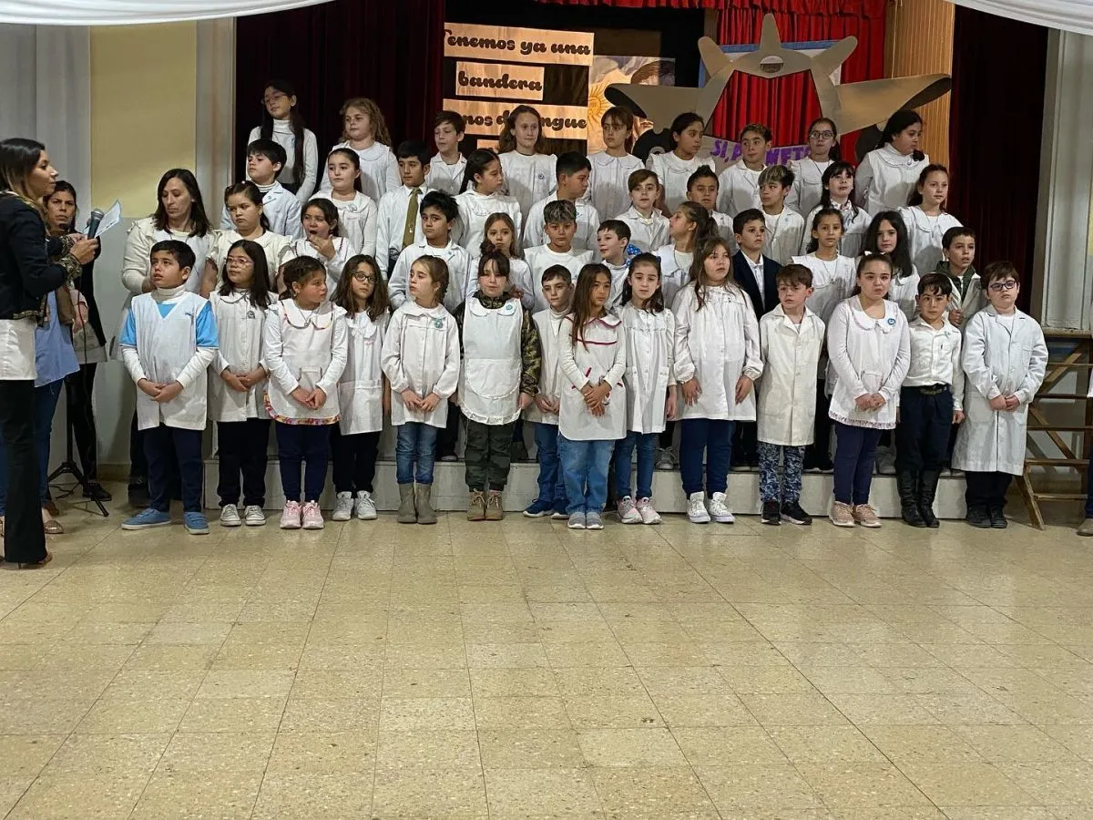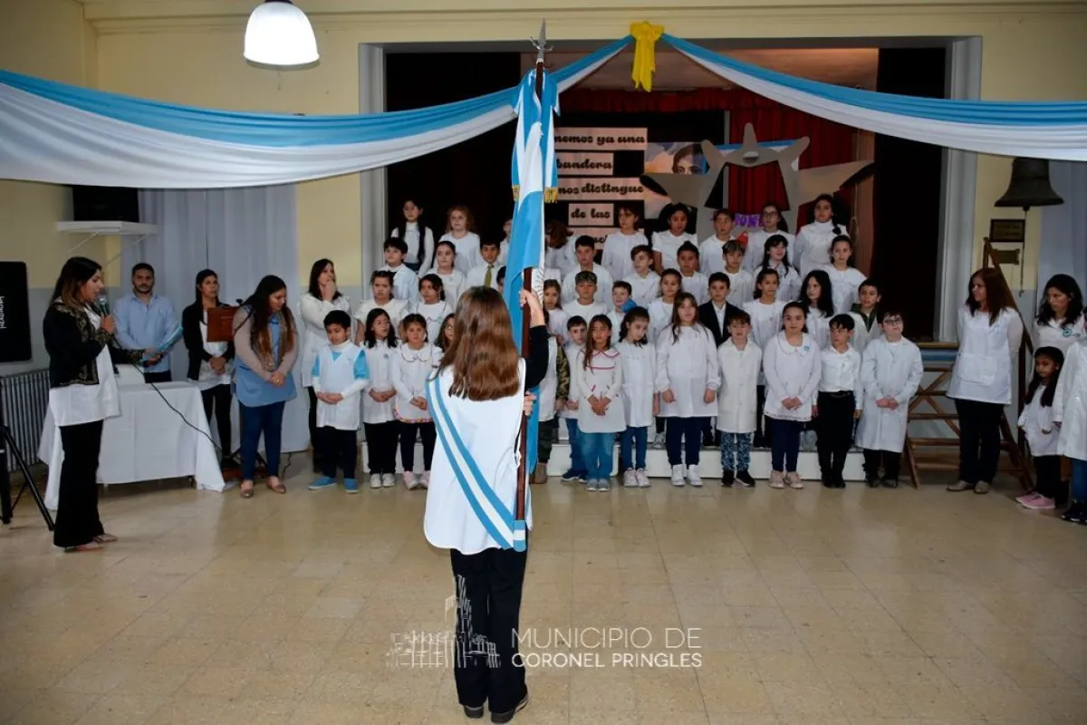 En el SUM, de la Escuela Primaria N° 1 “Domingo Faustino Sarmiento”, tuvo lugar en la mañana de hoy, a las 10.15 horas, el Acto conmemorativo por el Día de la Bandera y el 203° Aniversario del Paso a la Inmortalidad del General Manuel Belgrano.
