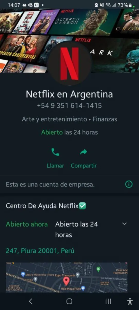 “A los veinte minutos, media hora de mandar la pregunta por WhatsApp me llaman por teléfono a este mismo número y se presentan como técnico de Netflix”, continuó el relato la vecina de Villa La Arcadia. En la captura de pantalla que compartió con FM Reflejos, se ve el número de teléfono desde el que hicieron la estafa: (+54 9) 3543-640961. Aunque como se pudo comprobar, también pueden aparecer otros números como (+54 9) 3516-141415. En todos los casos, desde el otro lado del teléfono se presentan como “cuenta oficial de ayuda de Netflix”.