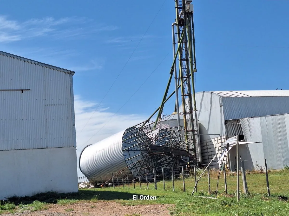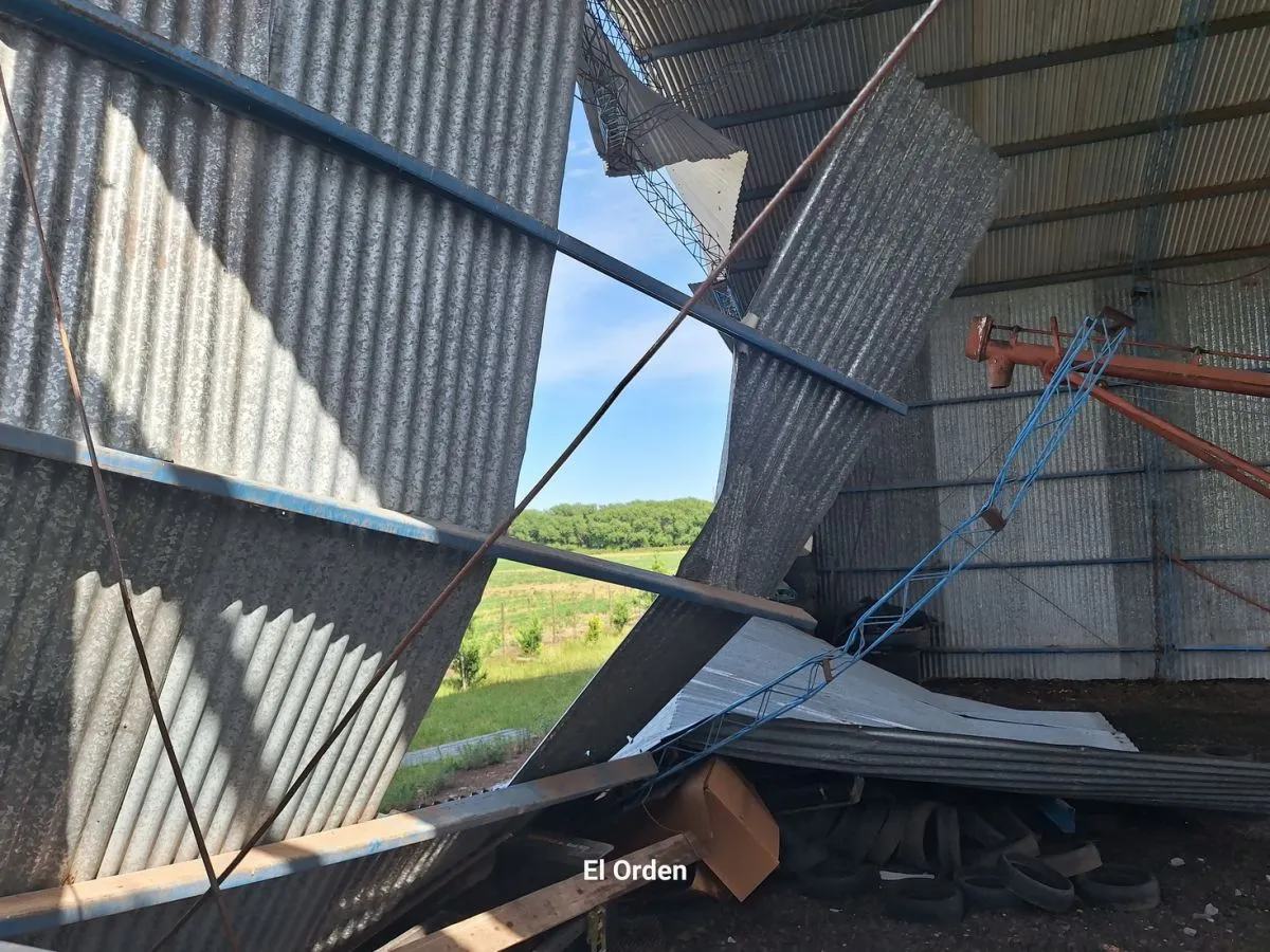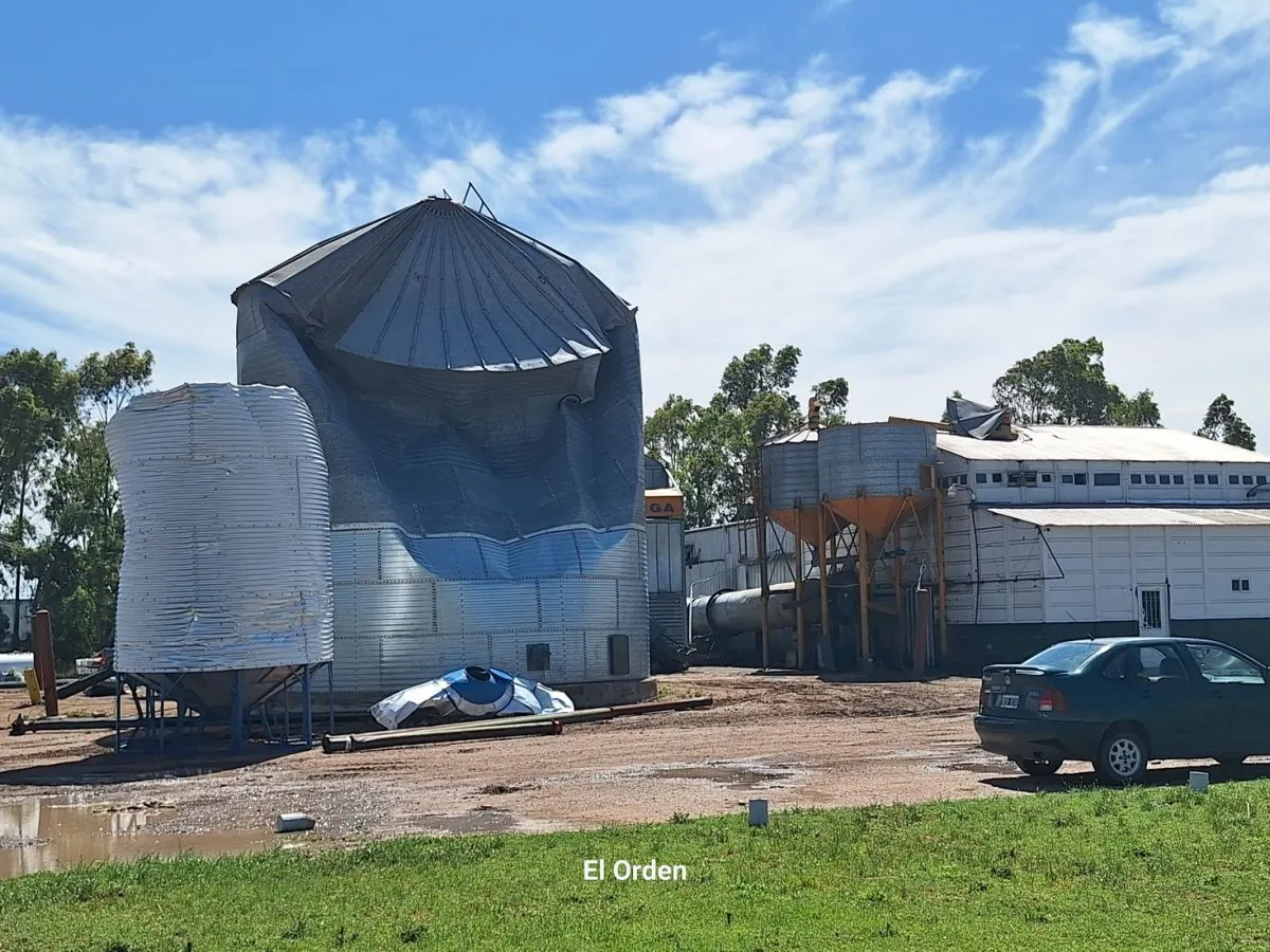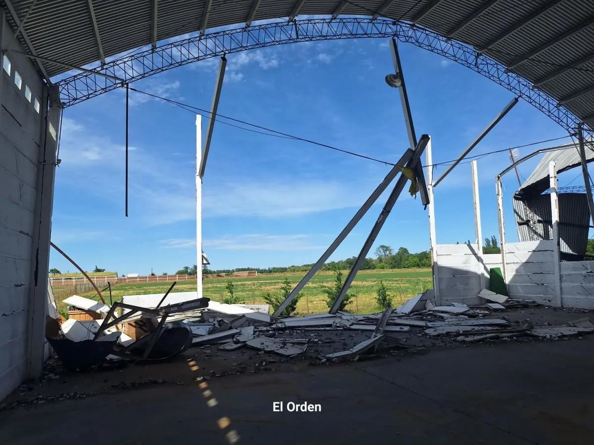 El fuerte viento arrasó con un galpón completo de Sartal, también voló techos de otros galpones, provocó caídas de silos, y hasta a la estación de servicio que se está construyendo frente al Parque, le dañó la infraestructura.