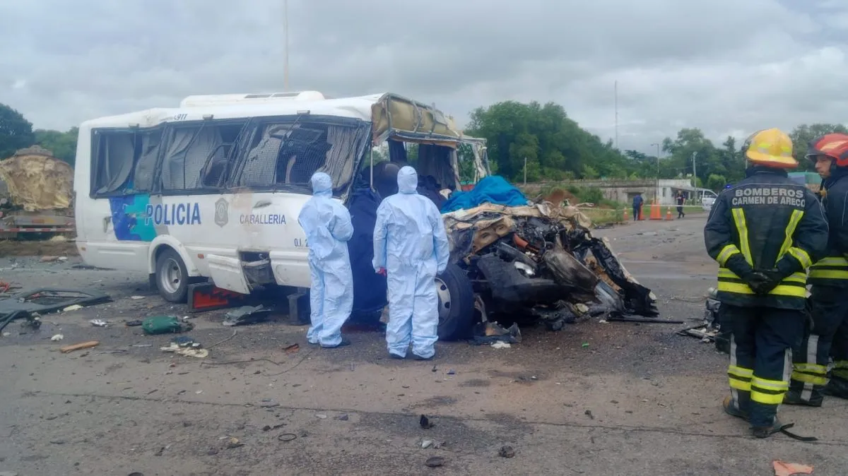 Hugo Martínez, jefe de Bomberos de Carmen de Areco, especificó que las cuatro víctimas eran policías. “Fue una colisión entre un camión cisterna y una combi de transporte de personal policial. Se hicieron cortes para sacar algunas personas del interior, pero el daño fue producto del choque”, dijo al canal TN.