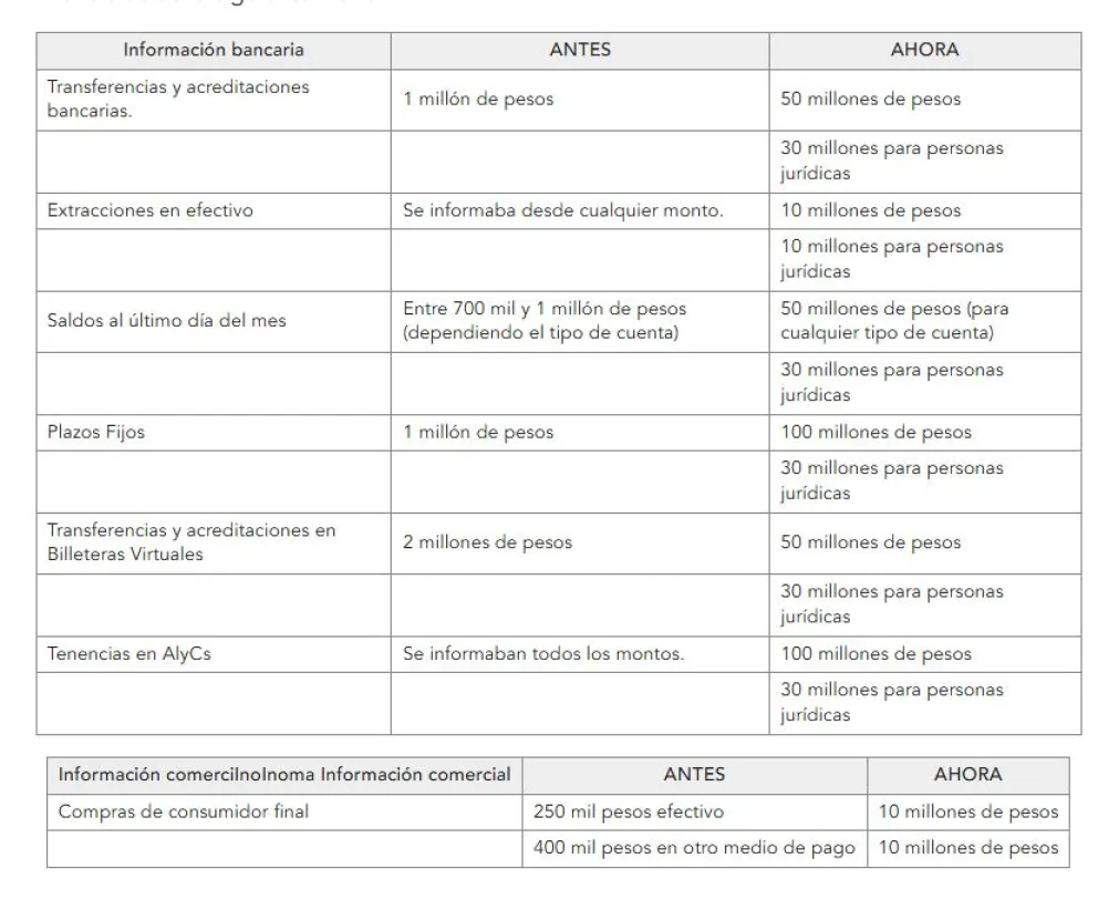 En otro sentido, se actualizarán los montos de los umbrales para el reporte de operaciones financieras de la siguiente manera: