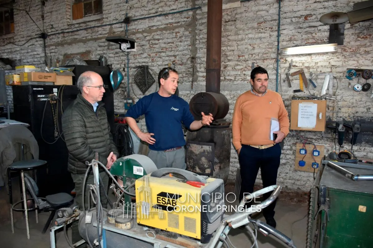 En el marco de su recorrida por emprendimientos locales, el intendente Lisandro Matzkin, acompañado por Oscar Rossi y Bernardo de Uriarte, visitó el taller JF Metal, donde fue recibido por su propietario, Federico Recofsky.