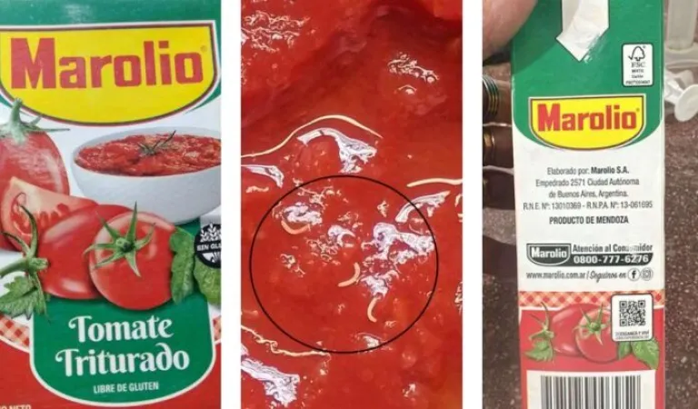 La Administración Nacional de Medicamentos, Alimentos y Tecnología Médica (ANMAT) advirtió “de forma preventiva y con el objetivo de proteger la salud de la población”, sobre la presencia de gusanos en una partida de tomate triturado en caja marca Marolio.