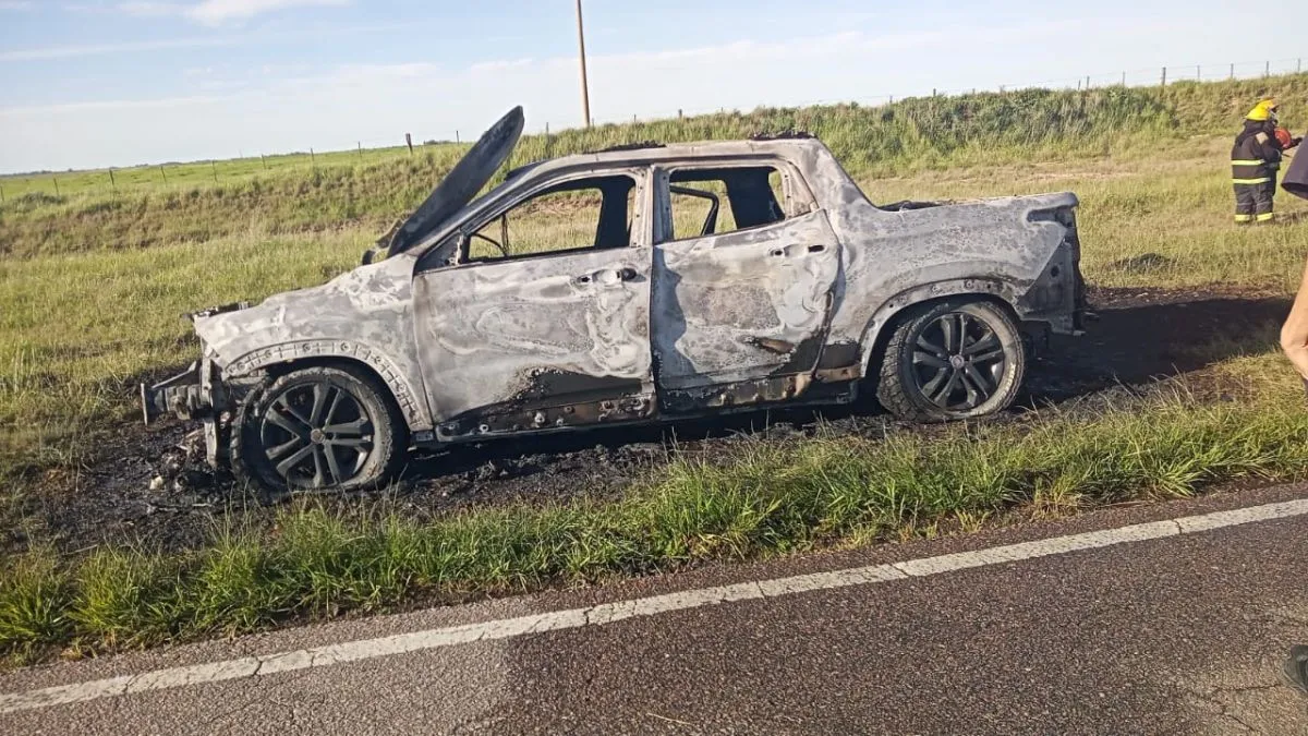 El hecho ocurrió esta tarde, alrededor de las 17 horas, a 15 km de Coronel Pringles en dirección a Tres Arroyos. Una camioneta Fiat Toro, perteneciente a la empresa local RBD Comisiones, sufrió un incendio que la dejó destruida por completo.