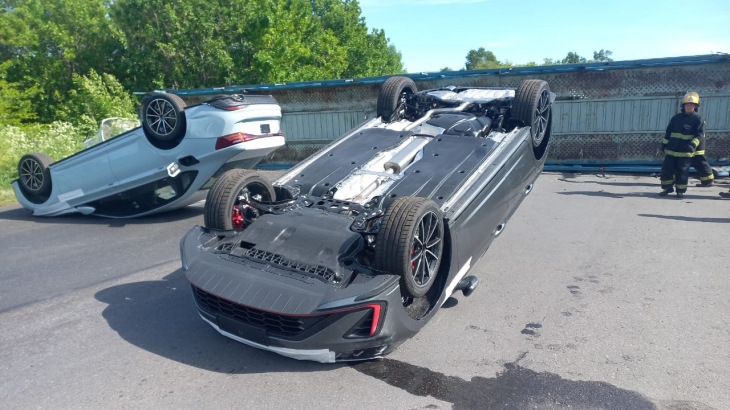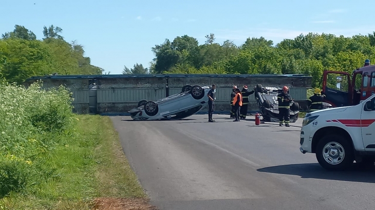 El siniestro se produjo por causas que aún se investigan y resultó el camión volcado sobre la calzada, generando importantes complicaciones en la circulación. Dos de los automotores que estaban arriba terminaron volcados en la ruta, mientras que el resto quedó en el camión.
