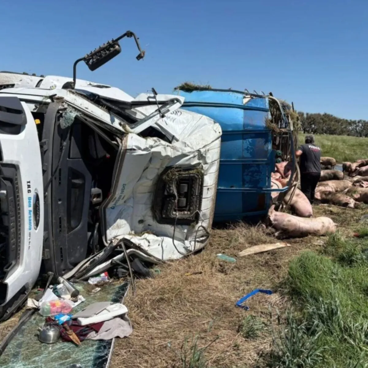 El accidente ocurrió a la altura de Chacabuco, provincia de Buenos Aires. El chofer sufrió lesiones leves y decenas de personas se acercaron para llevarse los animales vivos y algunos los carneaban en el lugar.