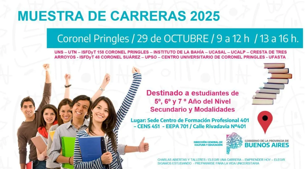 Este miercoles de 9 a 12 y de 15 a 16 horas, se llevará adelante la muestra de carreras universitarias y terciarias, propuestas educativas orientadas a los últimos años de secundario, también para educación especial y adultos.